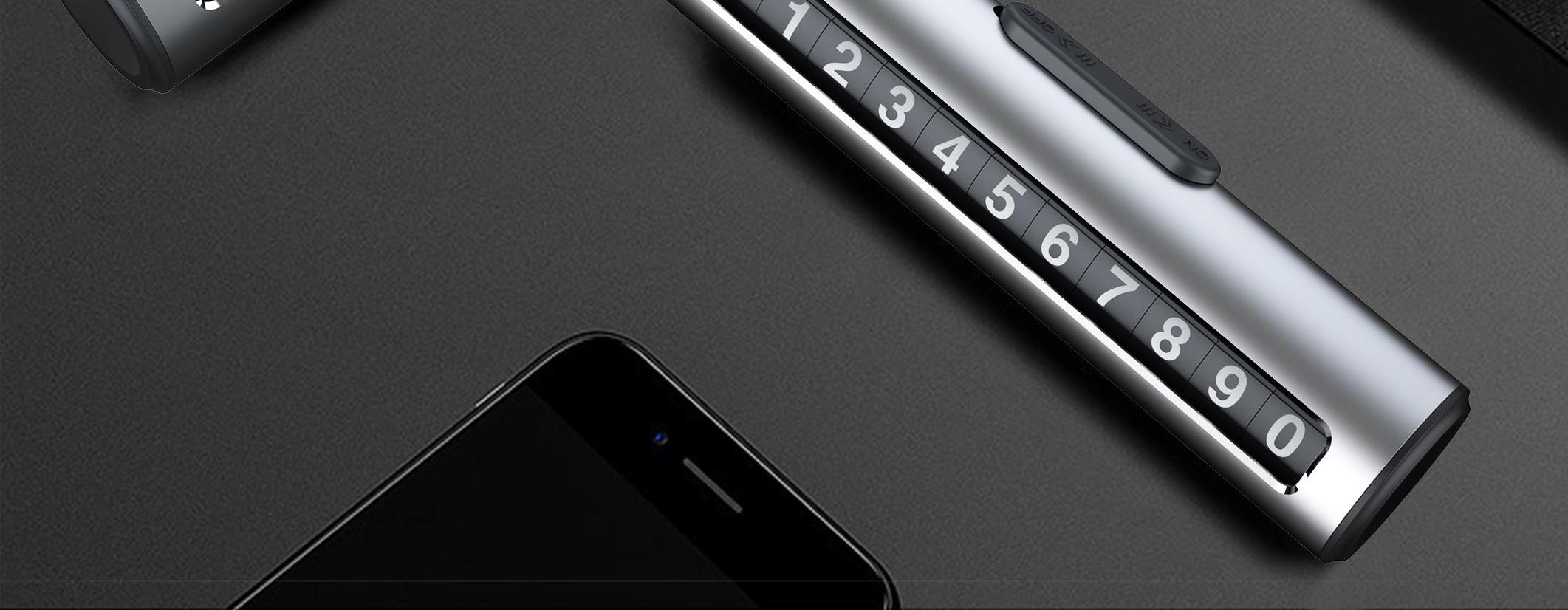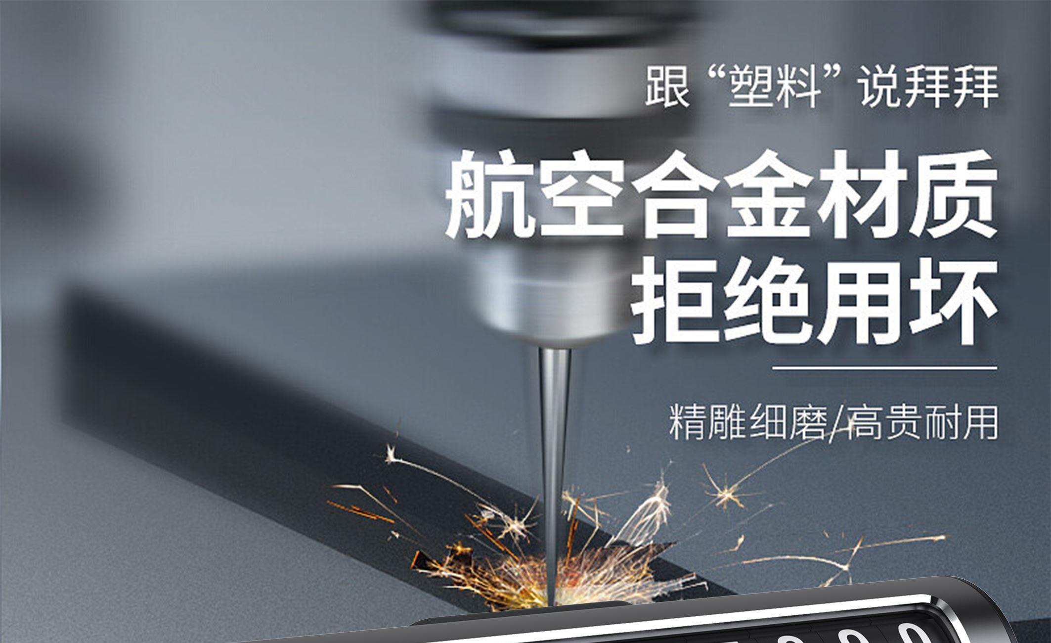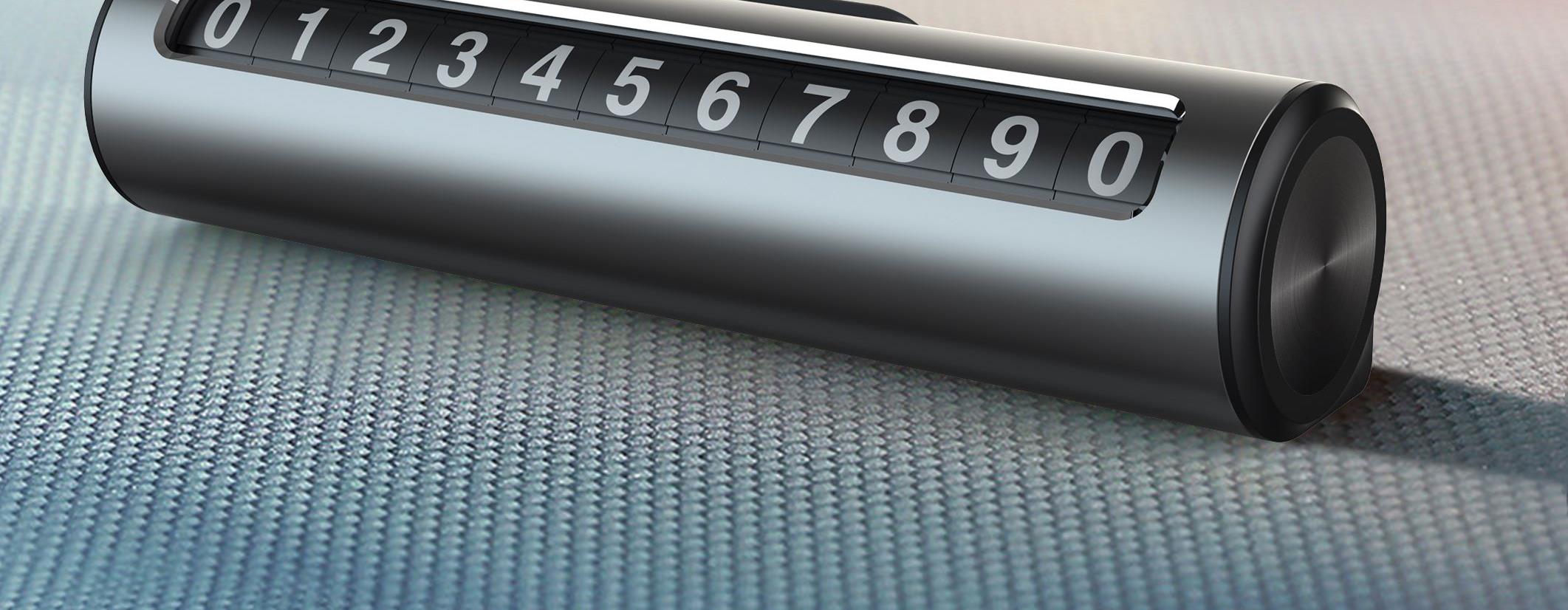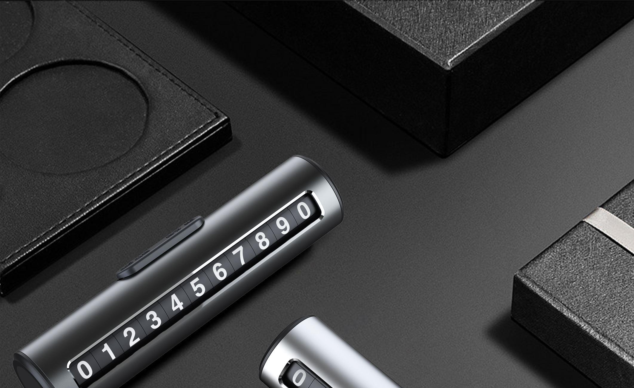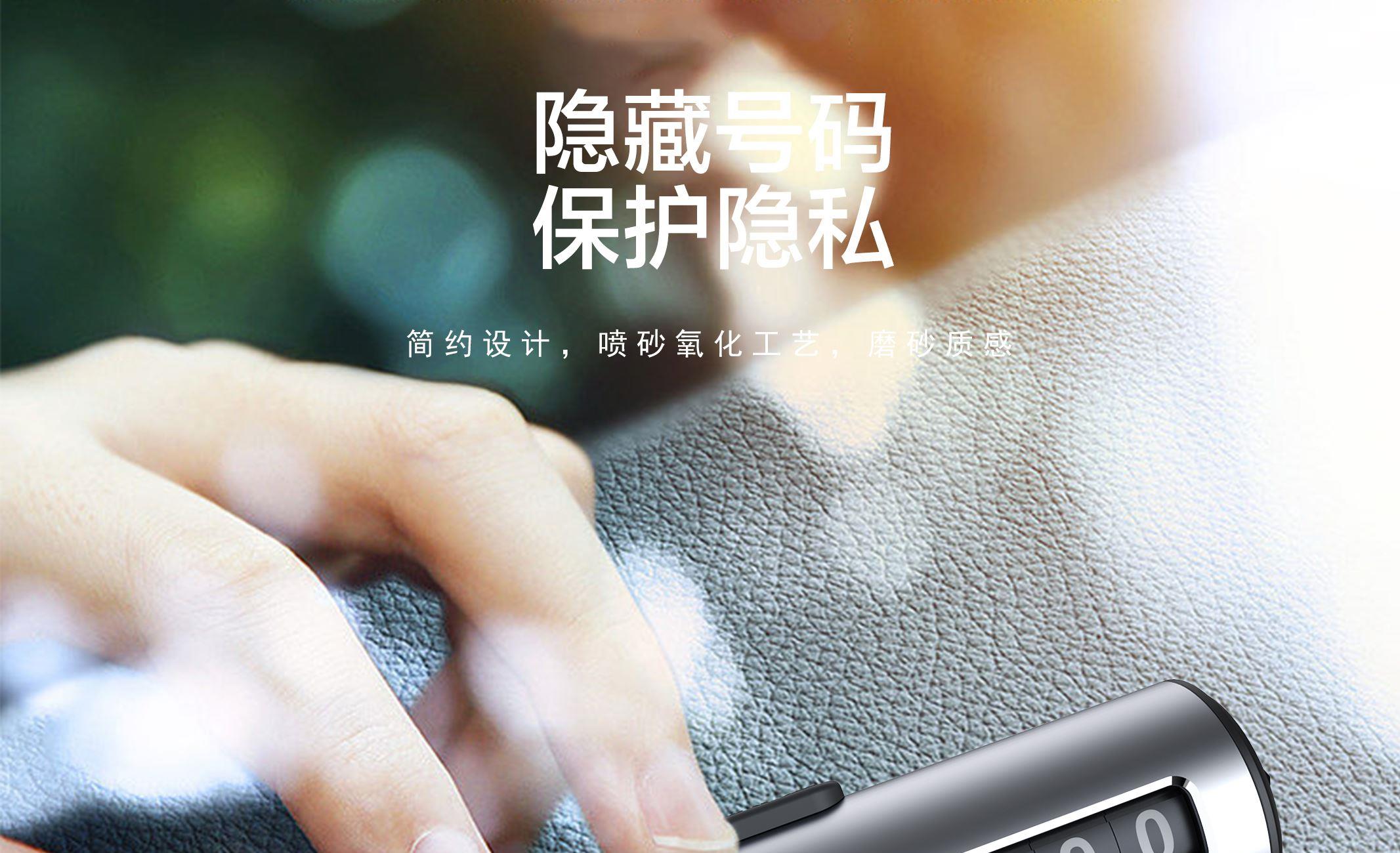 颜 色: 黑 色 材 质:PC+ABS塑胶 / 铝合金 产品尺寸:120*33*25mm 产品包装尺寸:160*70*35mm 产品净重:67g ● 金属制品,防晒耐热,不易老化 ● 波动拨片进行数字切换 ● 一键式号码隐藏 ●滑块按键隐藏号码 ●滚轮号码结构