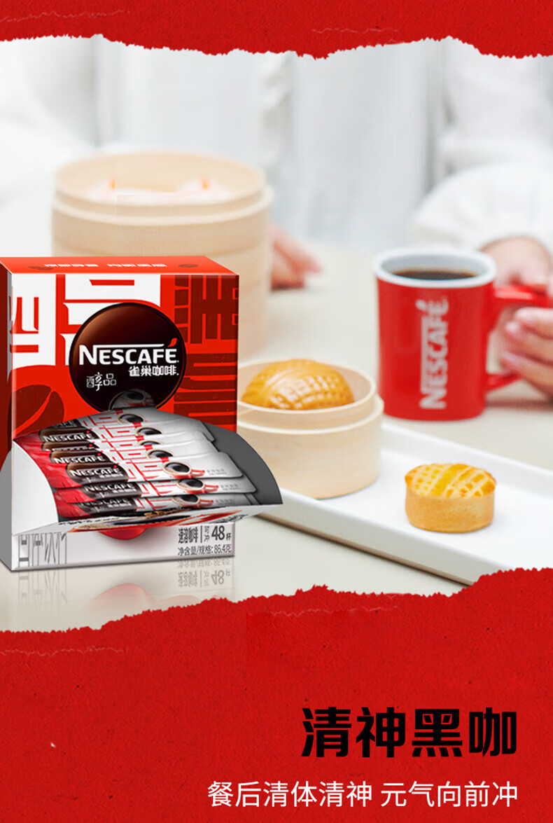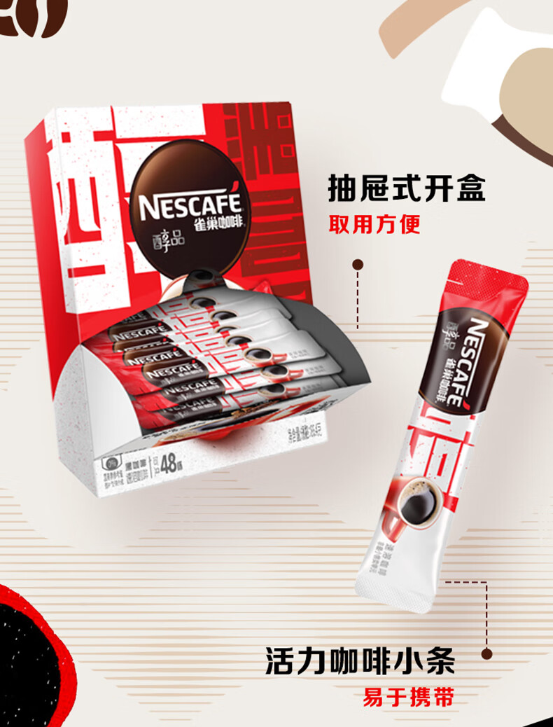 雀巢醇品速溶美式黑咖啡0糖0脂48条*1.8克盒装