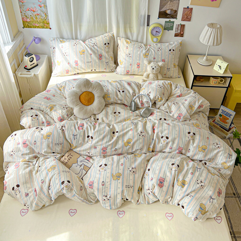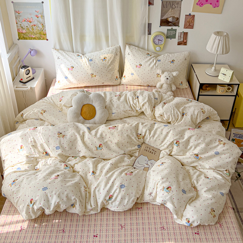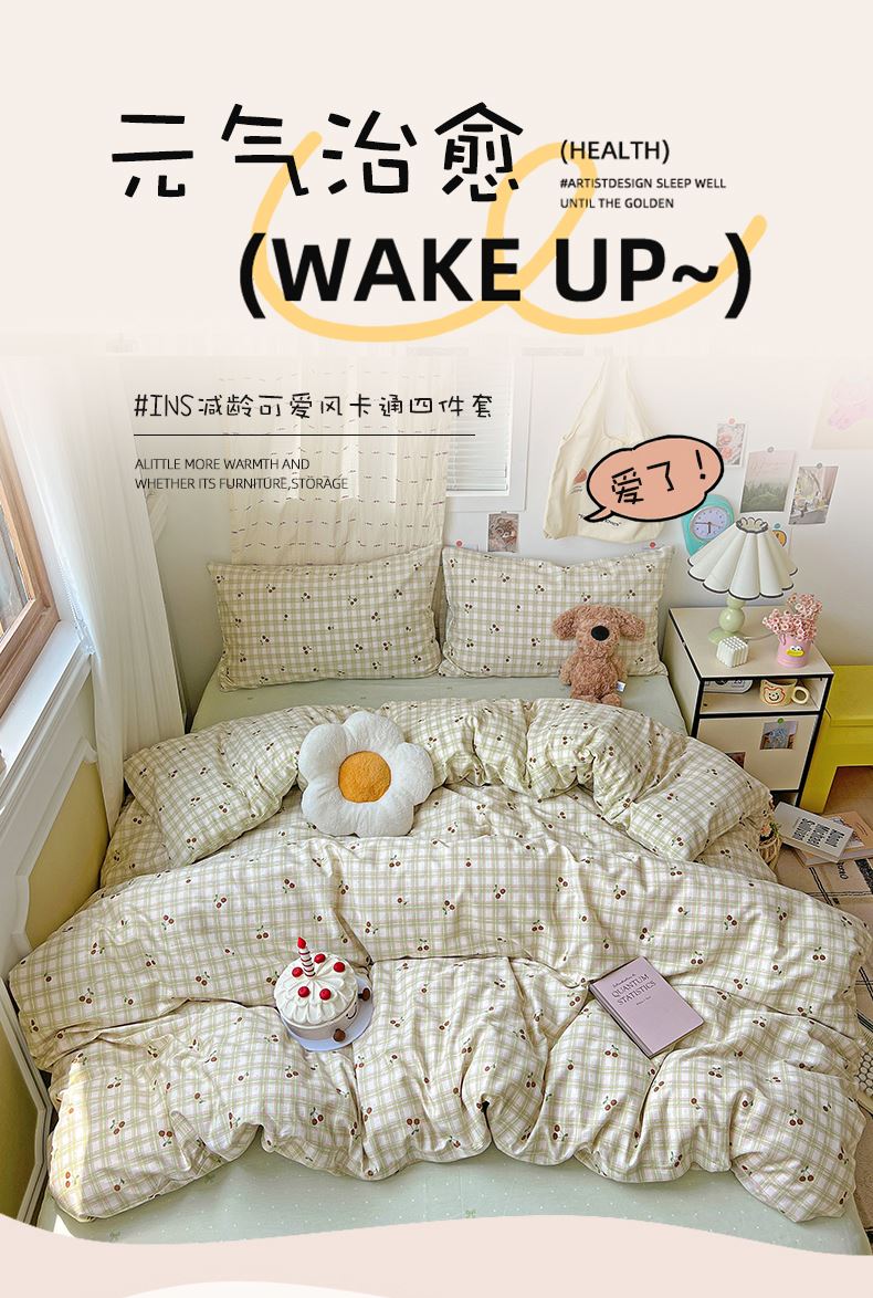 花花公子-家纺-40支全棉纯棉ins卡通可爱风简约四件套