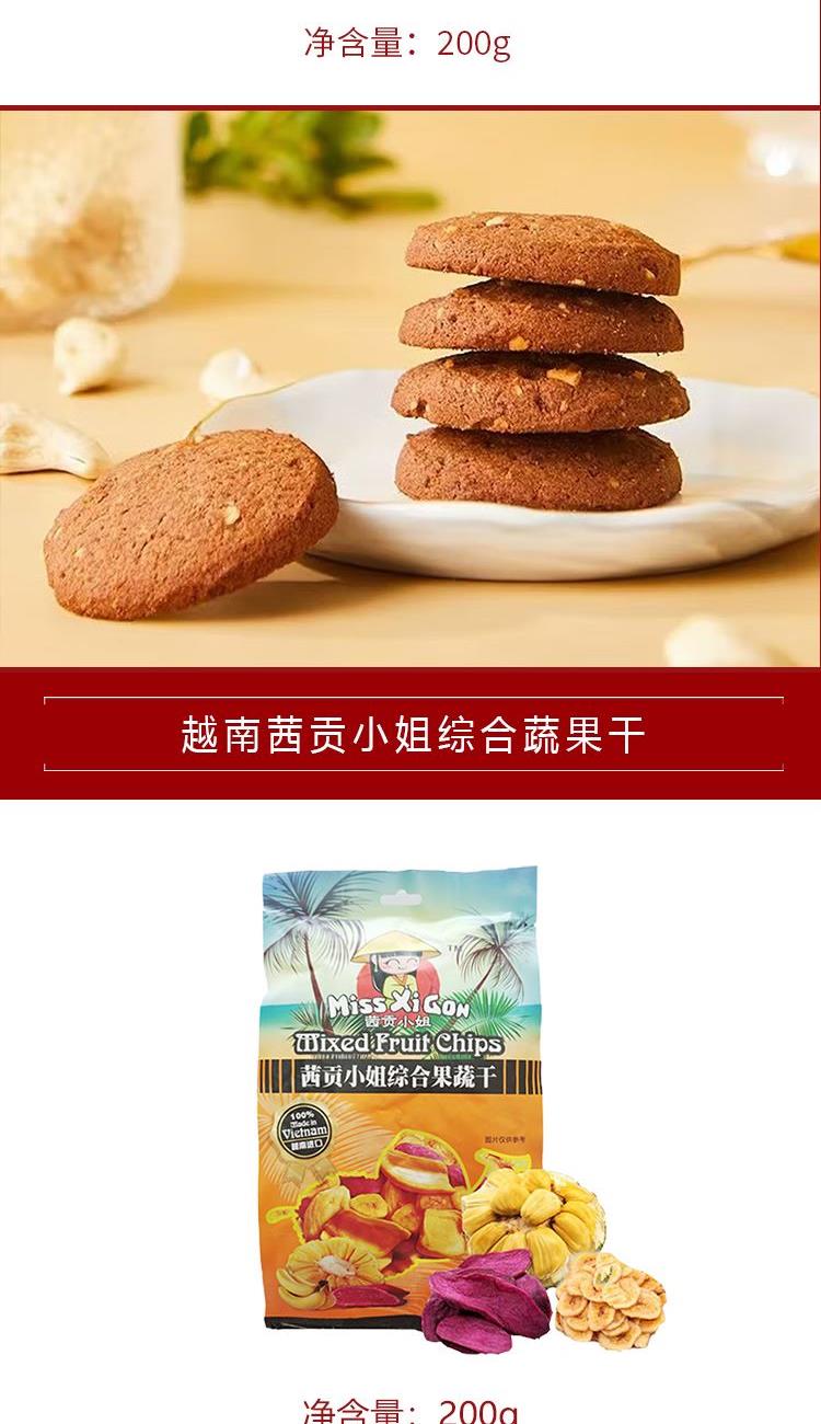英国沃尔克斯什锦太妃糖(130周年纪念版红色)158g 瑞士三角牛奶巧克力(含蜂蜜及巴旦木糖)100g 瑞士三角黑巧克力(含蜂蜜及巴旦木糖)100g 意大利维趣多可可榛子味饼干225g 意大利维趣多全麦饼干225g 印尼皇冠丹麦巧克力味腰果曲奇饼干200g罐装 越南茜贡小姐综合蔬果干200g 马来西亚滴朵蓝山风味咖啡90g 马来西亚滴朵原味白咖啡90g 越南进口丹帝即食燕麦片1000g 精美包装盒:360*360*190mm