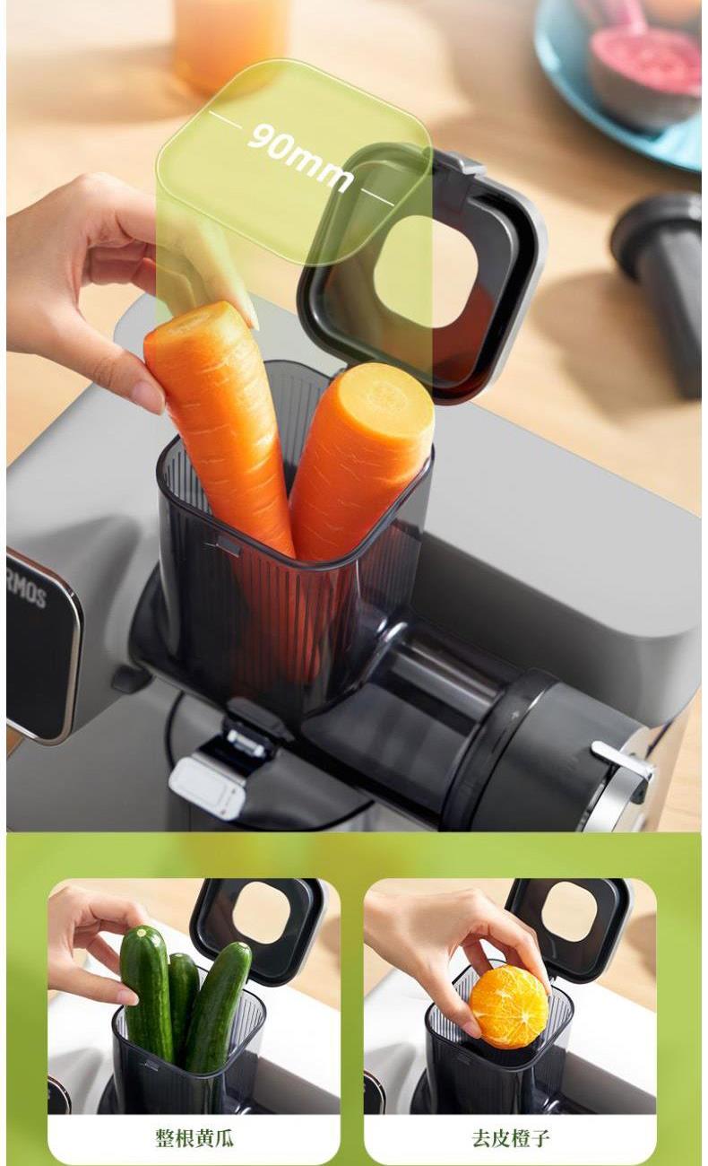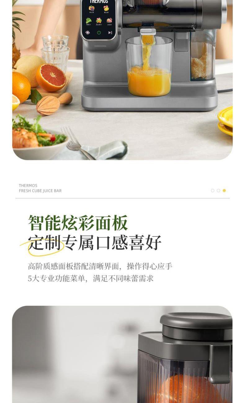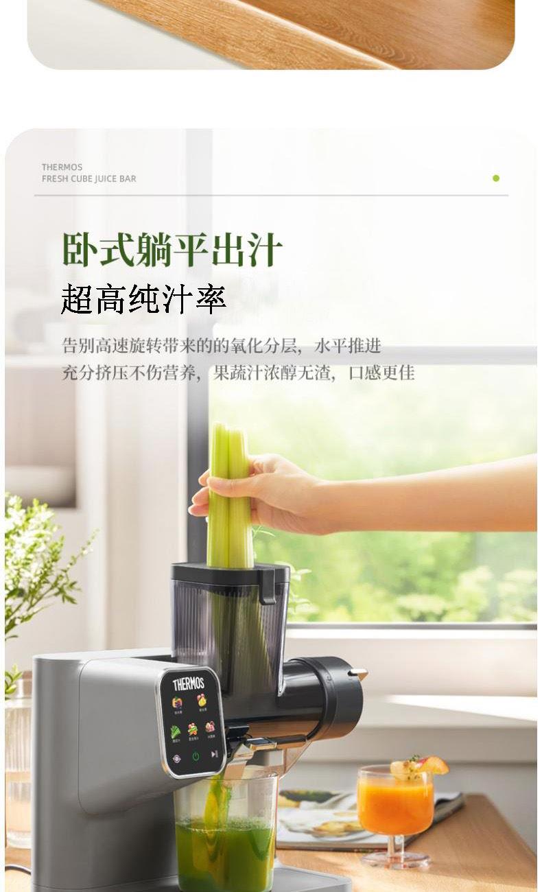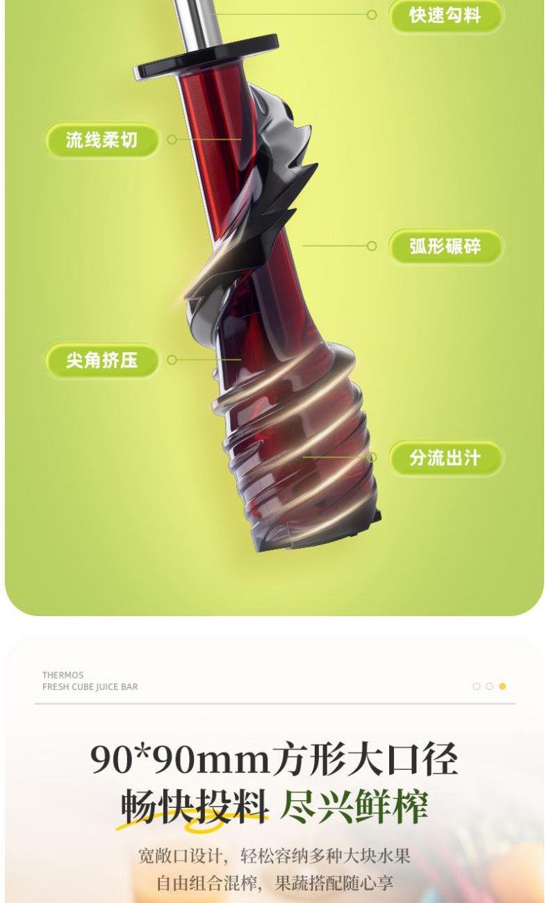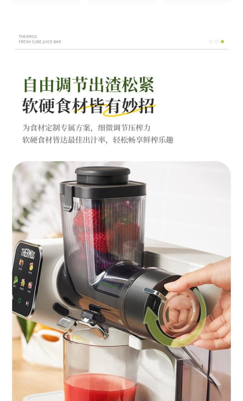 独有FreshmasterPlus 强力智能锁鲜榨(通过变频动力系统与程序,以不同的程序匹配不同特性食材。再配合专/利压榨力调节旋钮匹配对应的压榨力度,全面提升榨汁的顺畅度以及出汁效率。)