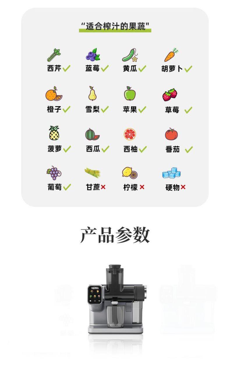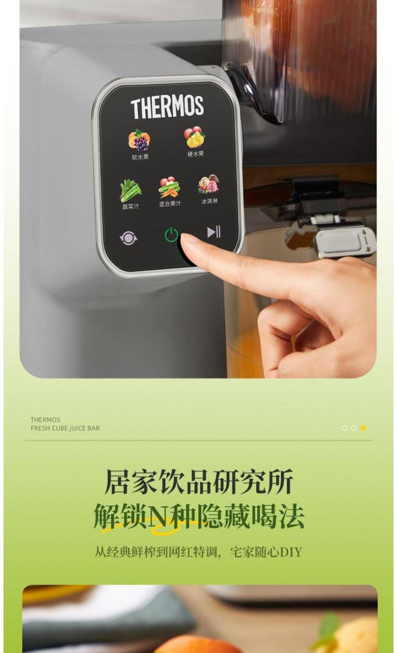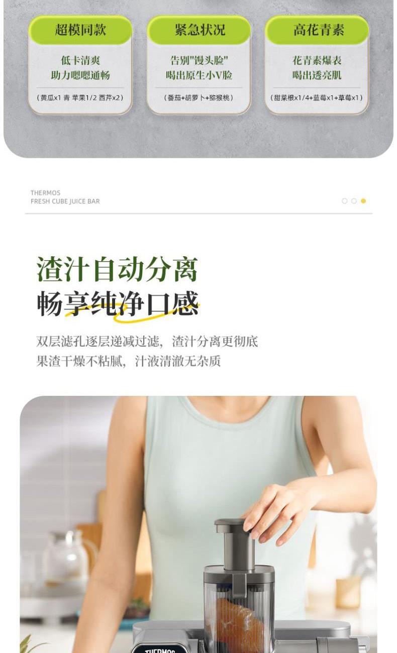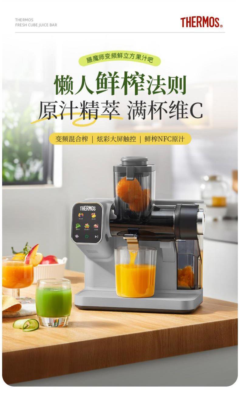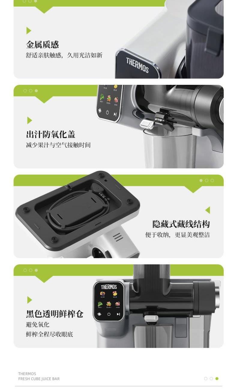 独有FreshmasterPlus 强力智能锁鲜榨(通过变频动力系统与程序,以不同的程序匹配不同特性食材。再配合专/利压榨力调节旋钮匹配对应的压榨力度,全面提升榨汁的顺畅度以及出汁效率。)