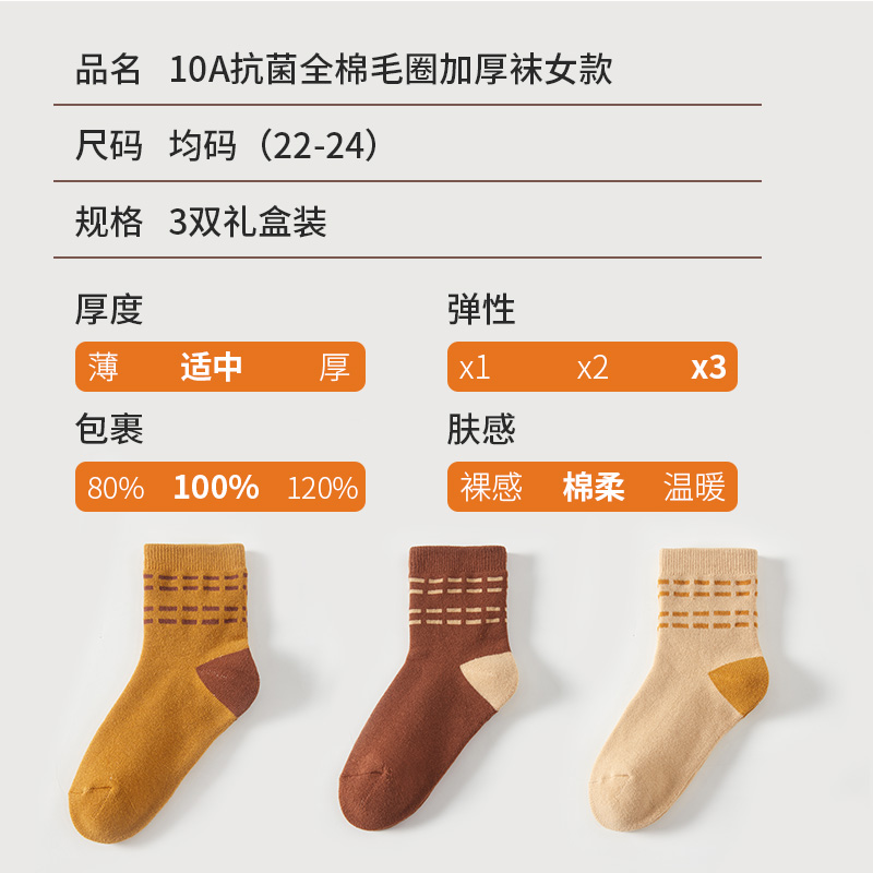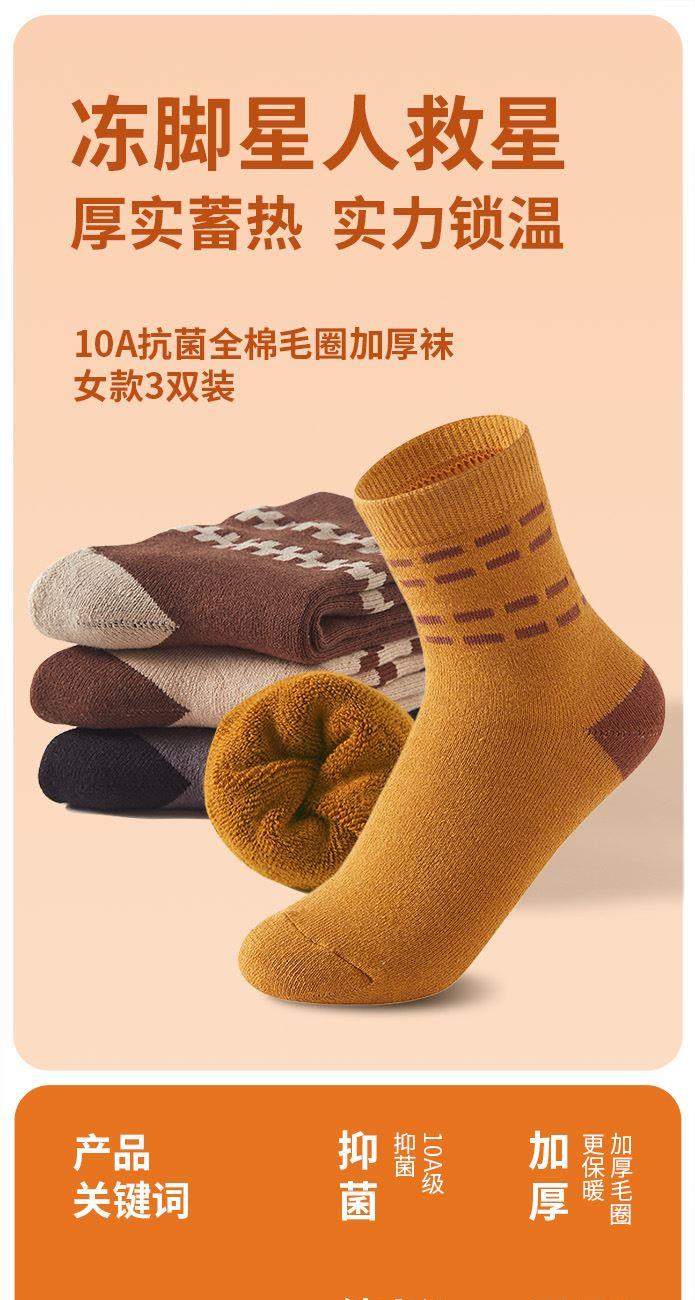 恒源祥10A全棉毛圈加厚袜女款3双装HYX061WZ