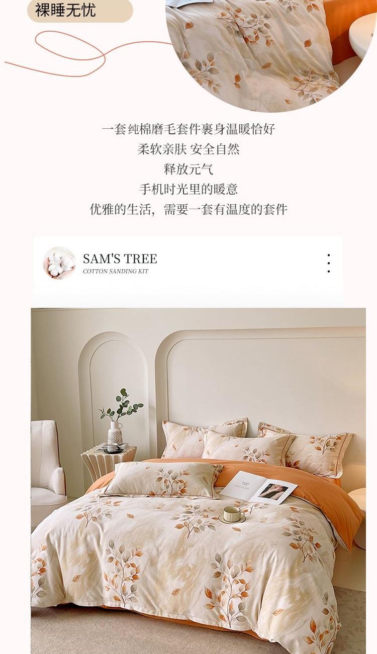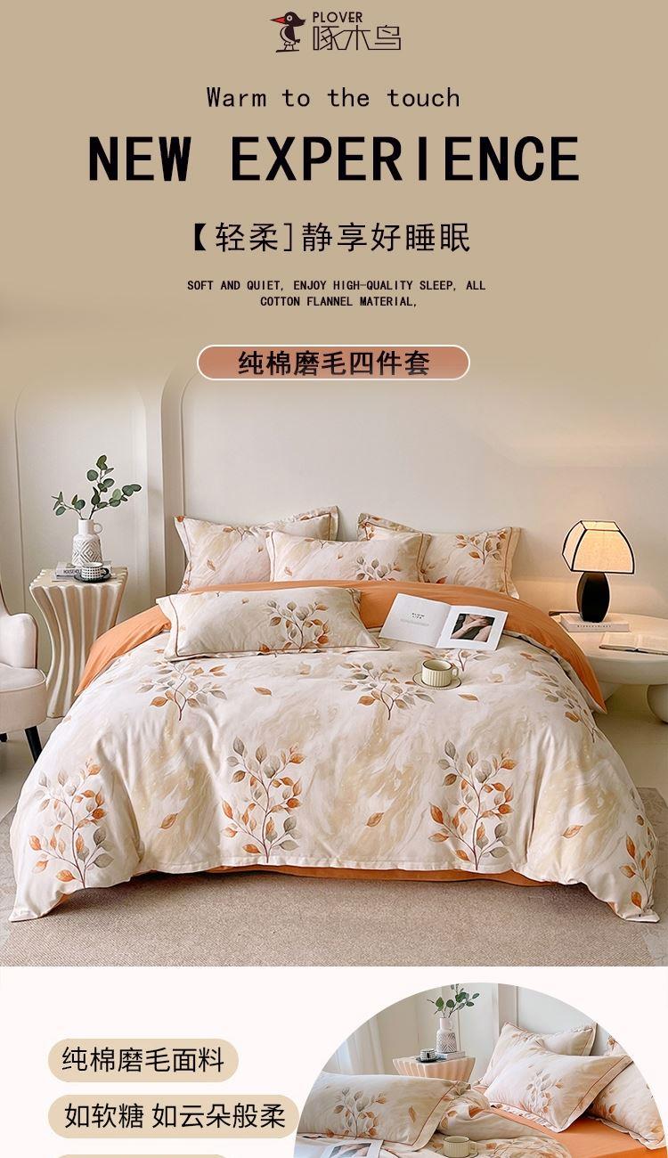 啄木鸟纯棉磨毛四件套(被罩:200*230cm)