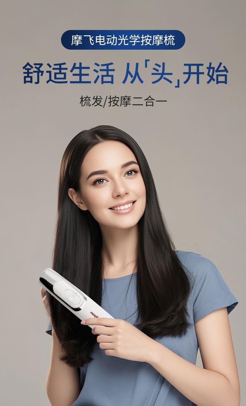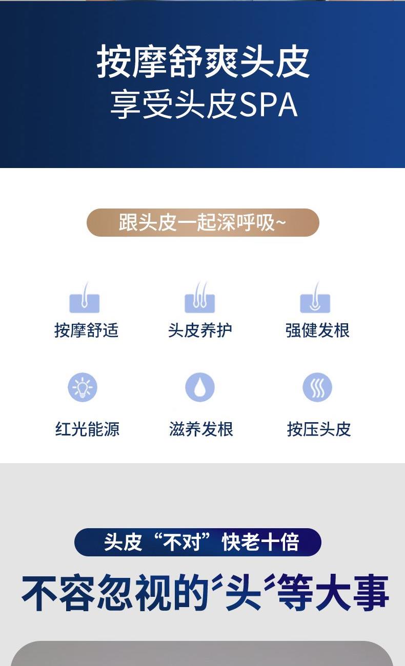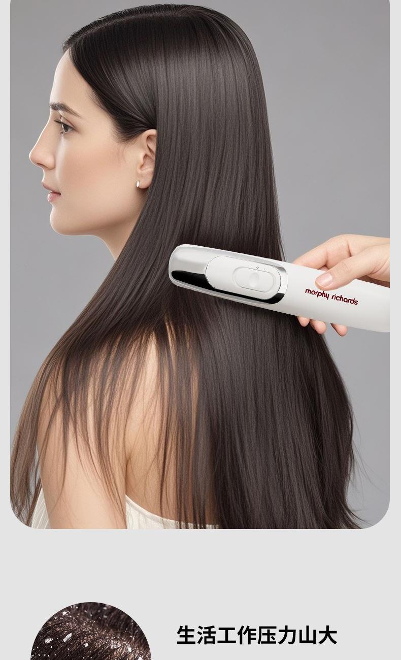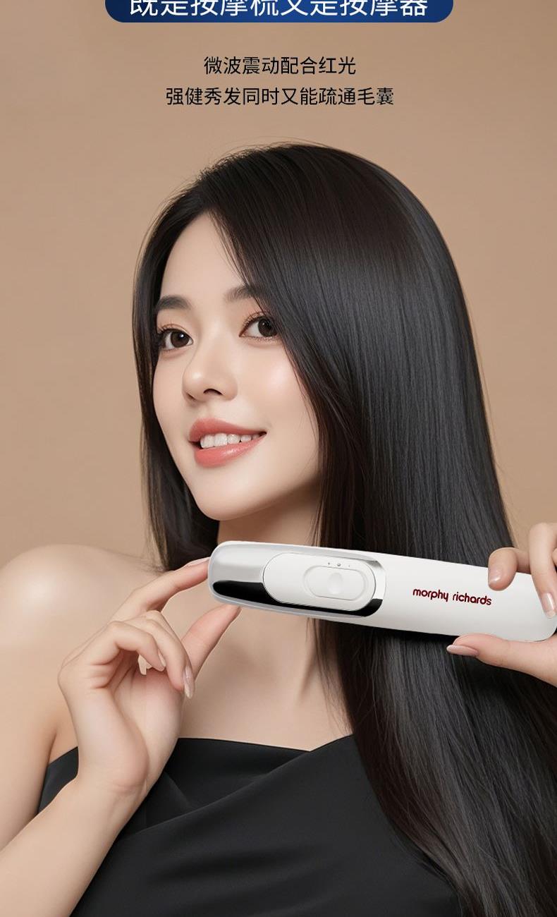 型号 MR7108 产地 广东深圳 69条码 6975660320376 净重 117.3g(不含电池) 毛重 260.5g 包装尺寸 250X100X70mm 大箱尺寸 450×495×508mm 电源供应:AAA电池 额定电压:3V 电机功率:1W 震动频率:10000转/min 材质:ABS+PE 执行标准:GB4706.1-2005 配件:主机,电池*2,说明书 卖点: 微波震动头皮,疏通毛囊放松大脑 红光照射,温热毛囊 可拆卸梳齿,一机多用 赠送电池 流线型握把,符合人体美学,轻巧易握