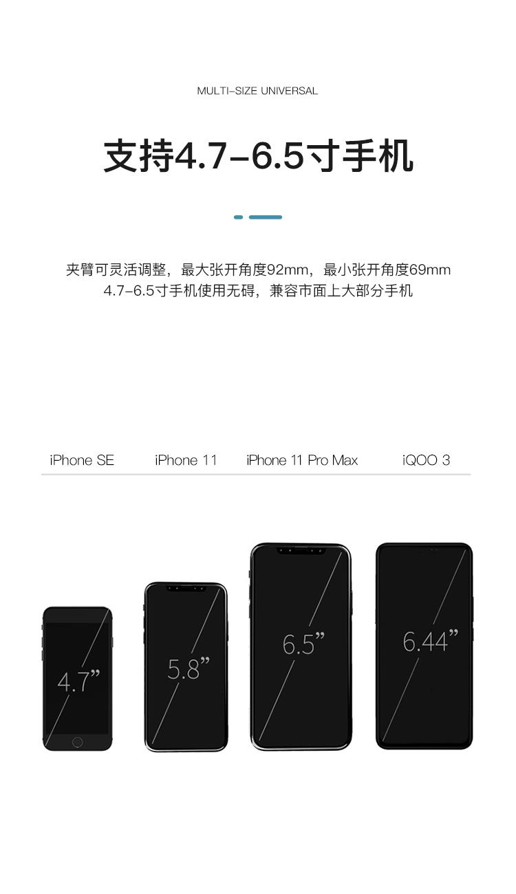 产品尺寸:95.25*91mm 包装尺寸: 105*170*50mm 产品重量:101g 颜色:黑色 适用:4.7-6.5寸手机 材质:ABS+铝合金 升级倒三角重力感应 加厚软垫,防滑减震,不伤机 不挡视线,不占用仪表台空间 万向转动球,360度任意调节 预留充电口,不挡home键