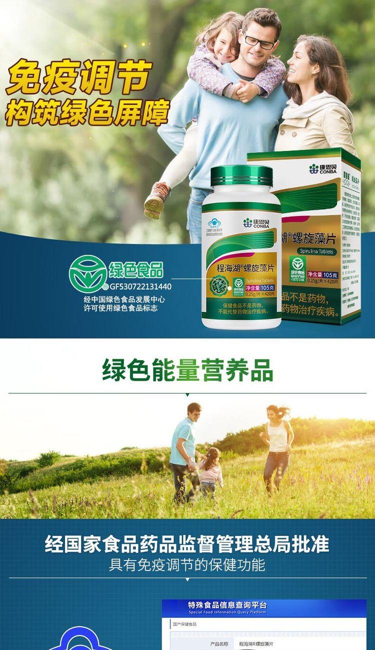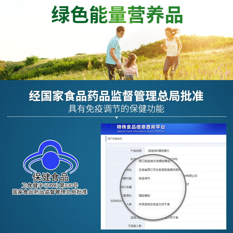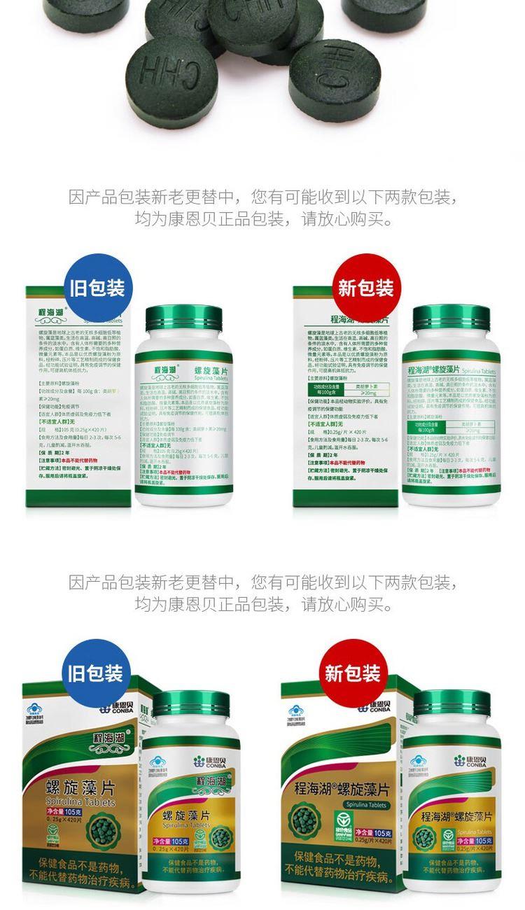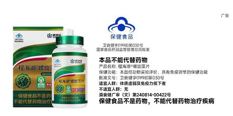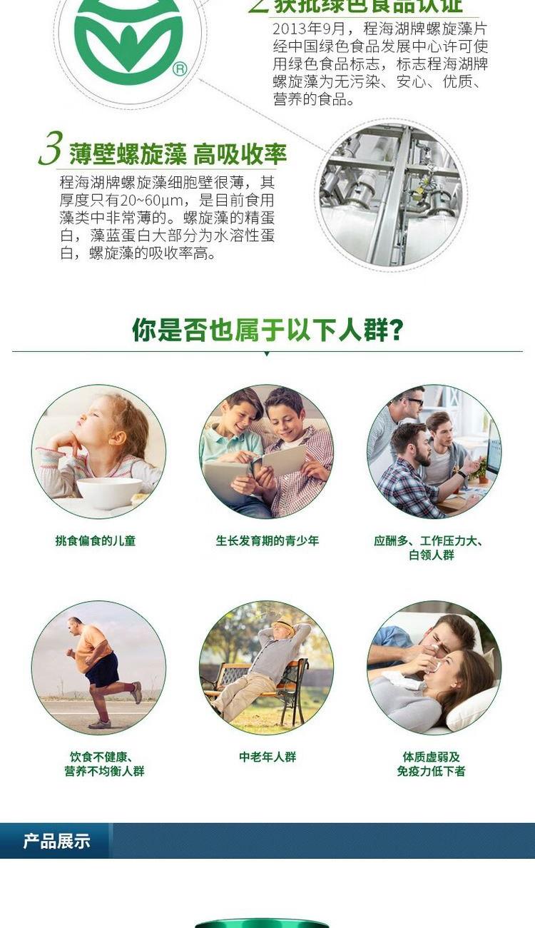 0.25g/片*420片 选用丽江程海湖自然繁殖的钝顶螺旋藻 程海湖牌螺旋藻片为绿色食品 螺旋藻的吸收率为90%以上
