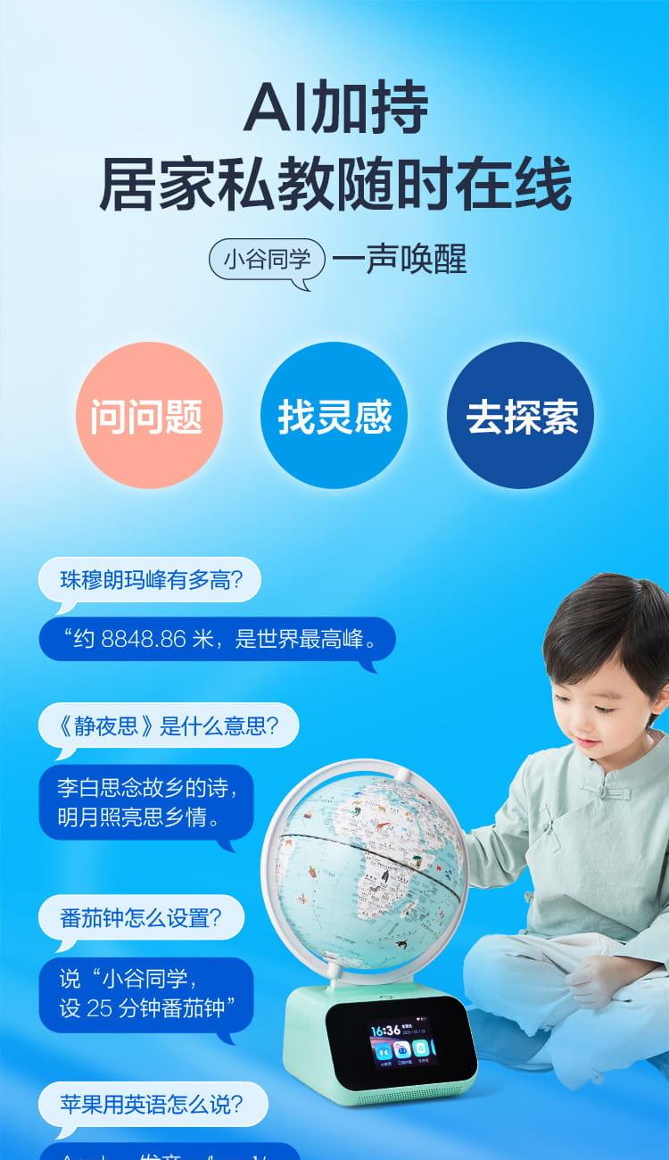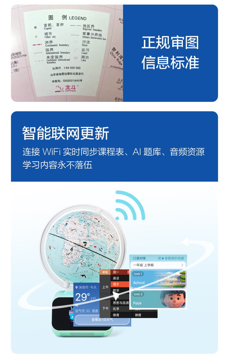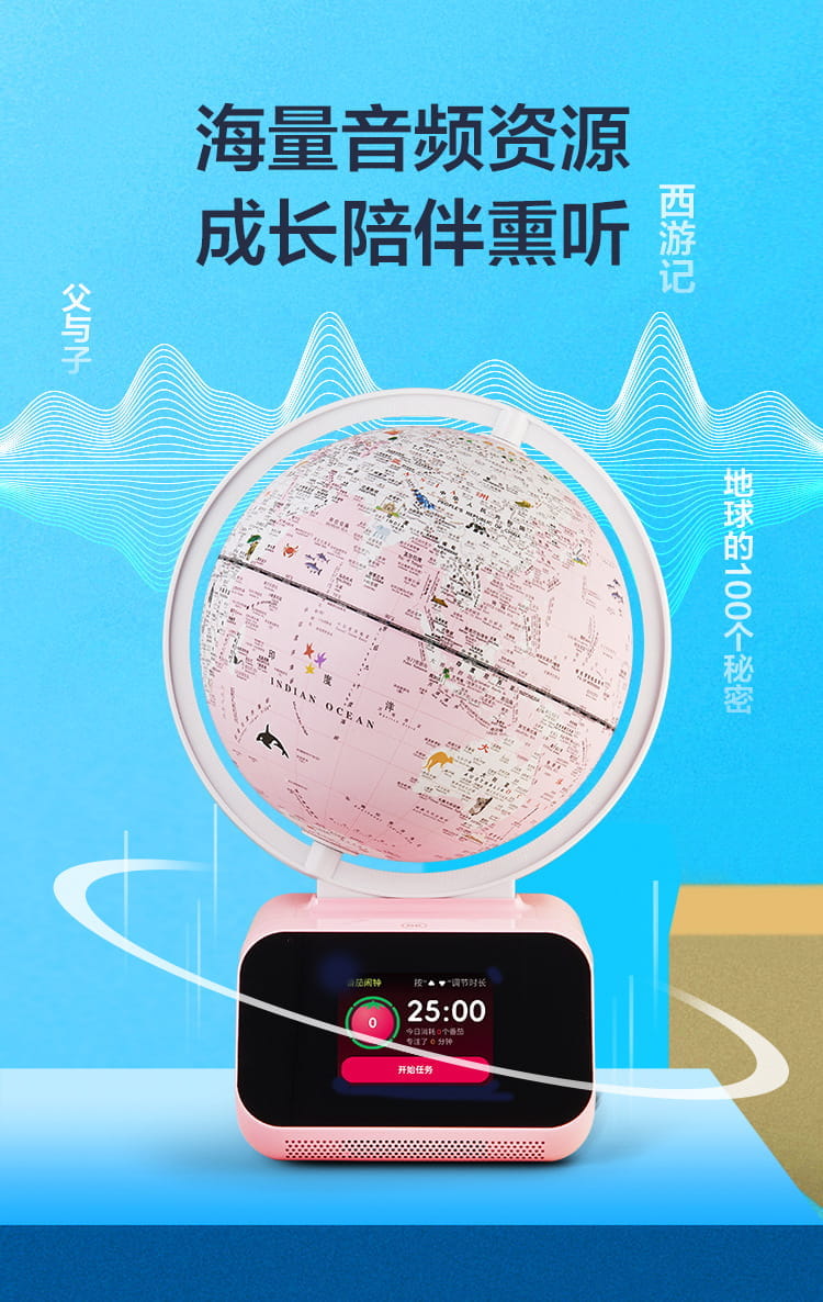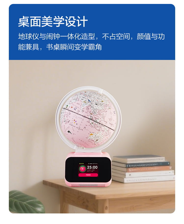 球体大小:20cm 产品尺寸:33.5*25.8*20cm 产品重量:1580g 产品构成:主机*1、中国地图1、世界地图*1、放大镜*1 AR互动地理学习,AI大模型智能语音互动,桌面智能学习工具,番茄智能时间管理,海量学习资源,温馨灯光