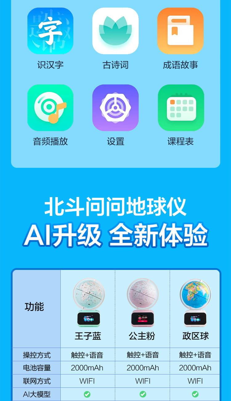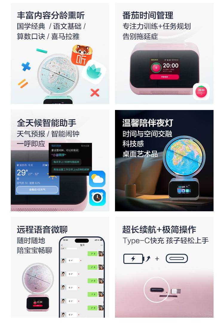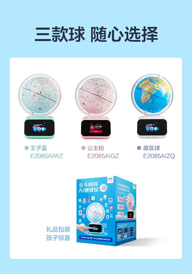 北斗问问智能闹钟AI大模型地球仪E2085系列智能时间管理器