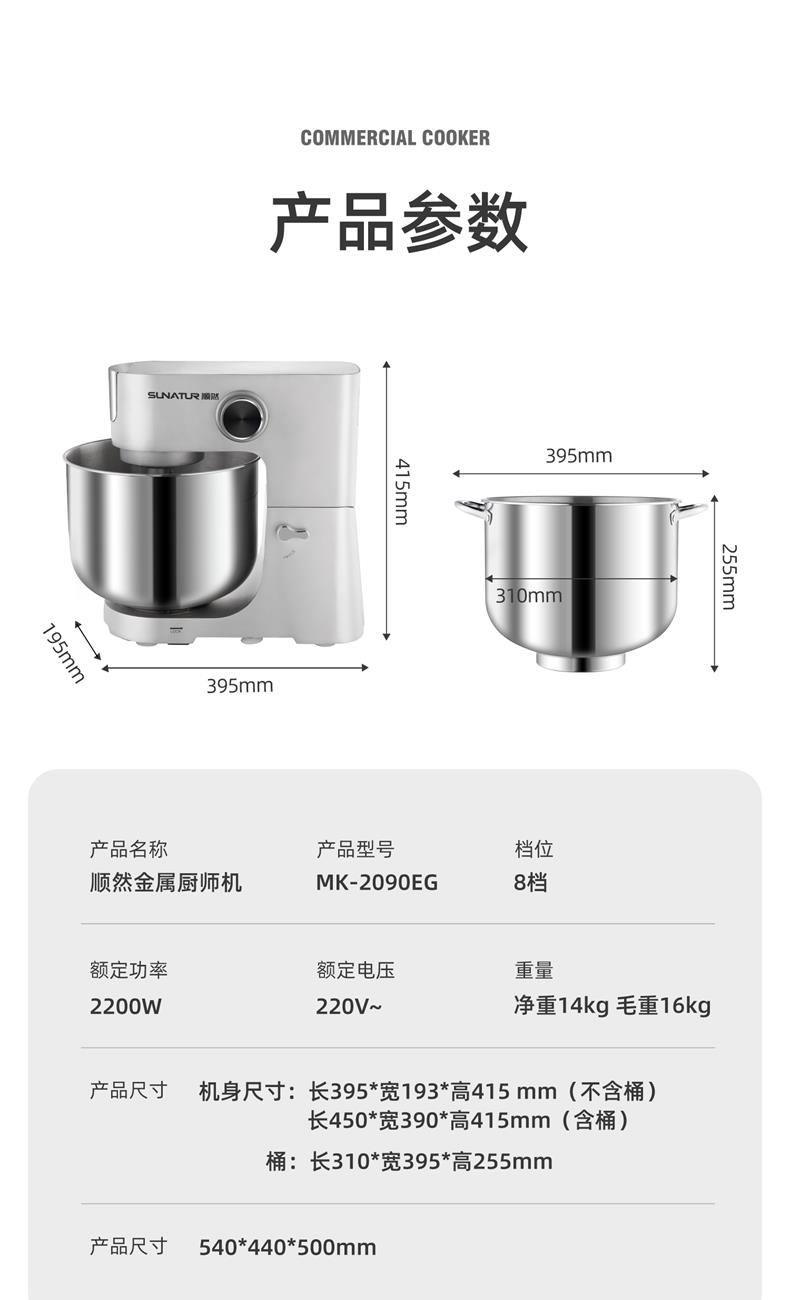 顺然SUNATUR商用金属双钩厨师机标配款MK-2090EG