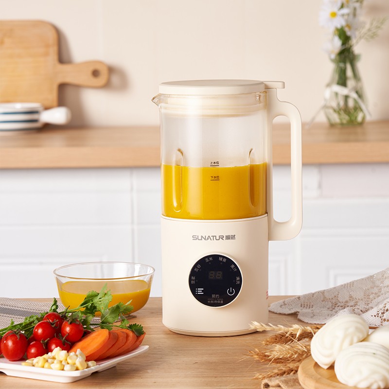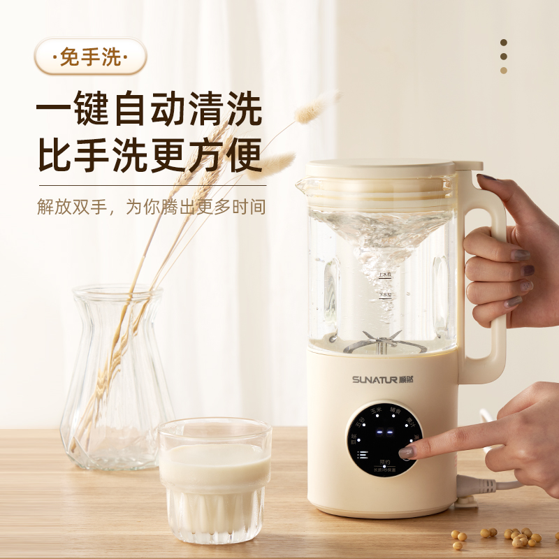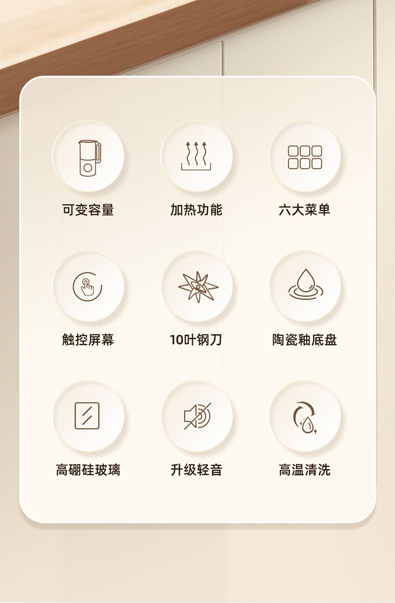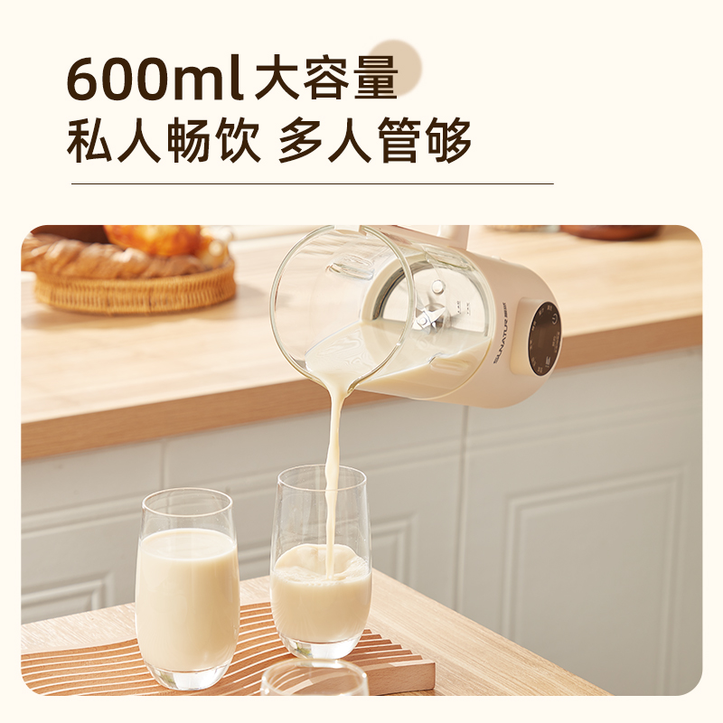 500W大功率电机,600ml容量适合1-3人 升级精钢10叶刀片,陶瓷釉不粘底盘 高硼硅玻璃壶体,耐热耐冷 12h定时预约,8大功能 支持加热功能,冷可榨汁,热可熬煮 干豆免泡免煮免过滤 一键清洗