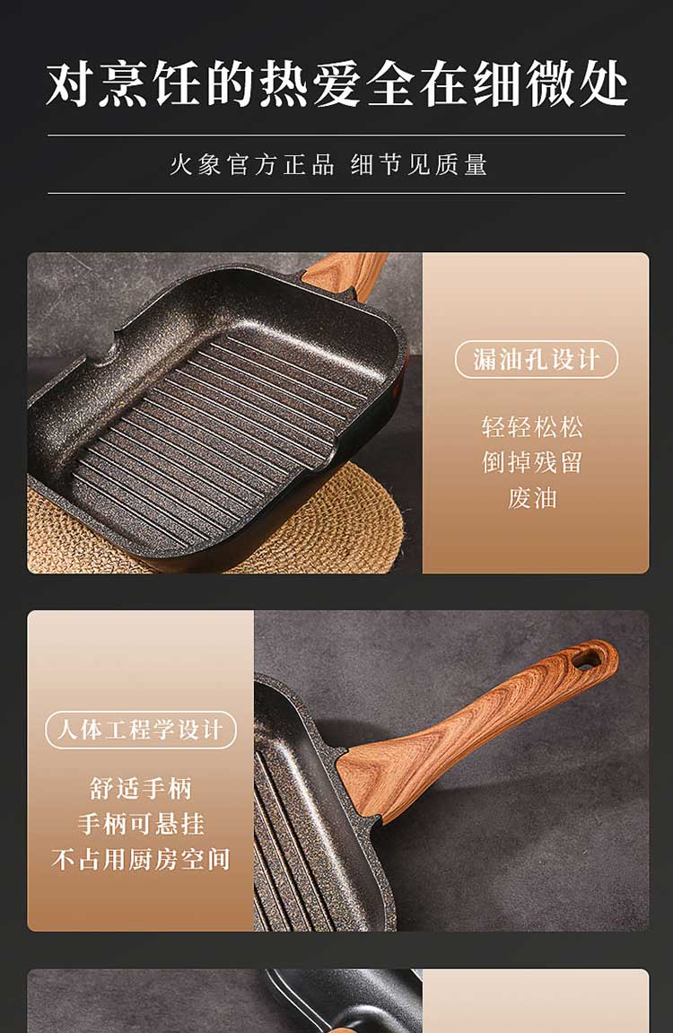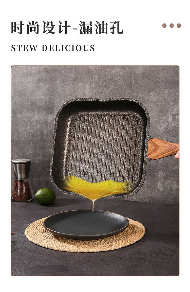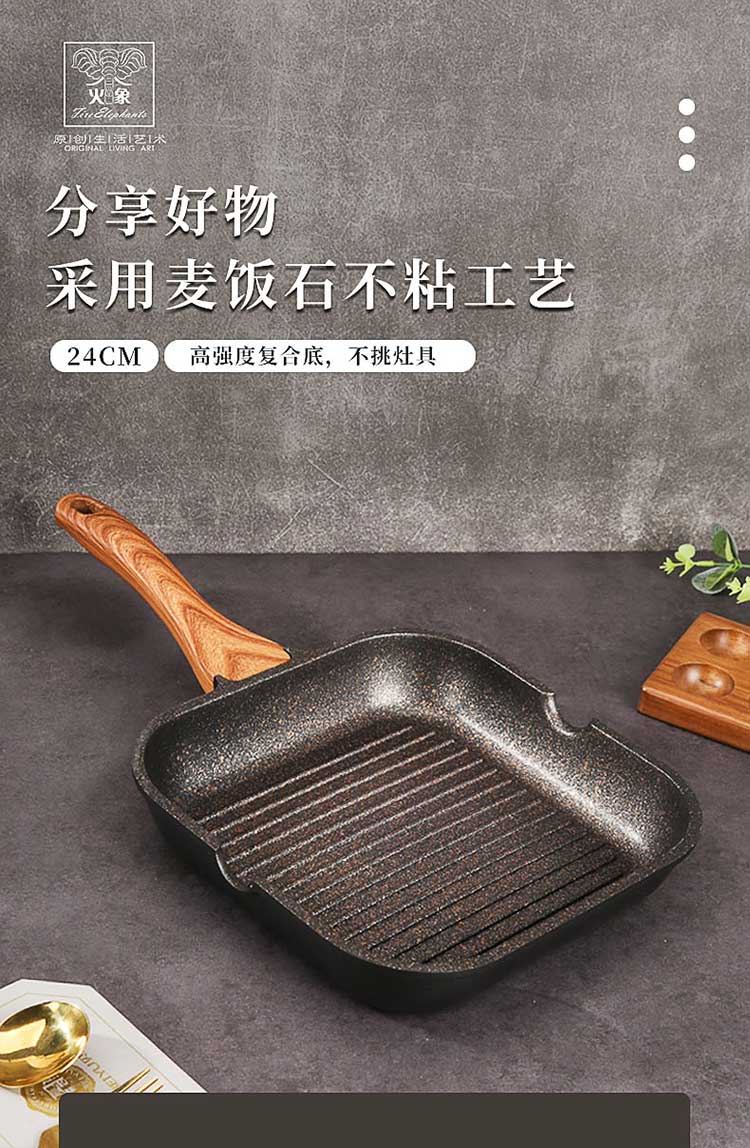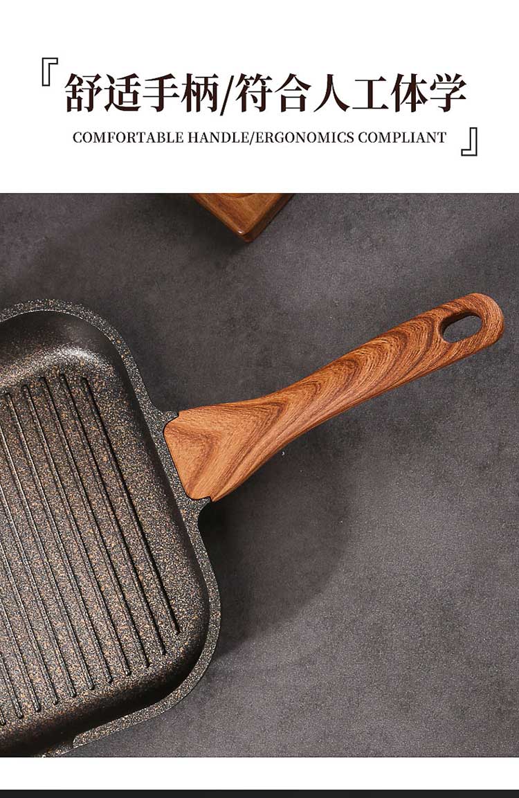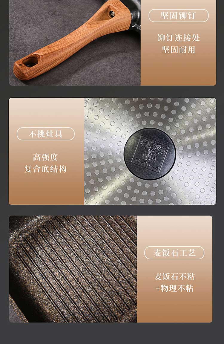 规 格:煎锅内径:24cm 材 质:铝压铸+麦饭石工艺 彩 盒 尺 寸:L46*W7.7*H26.5CM 外 箱 尺 寸:L63.6*W47.5*H55CM 1、一体成型的铝质锅身,导热均匀,受热快,少油烟,节能环保。 2、高强度复合底结构,加热更快更均匀,不易变形,不挑灶具,打造低碳节能新生活。 3、采用麦饭石不粘工艺,不粘性能优异,长时间使用也能历久弥新。 4、选用胶木手柄,隔热性能优异,握感舒适,增添厨房温馨自然气息,同时保障用户在烹饪过程中的安全与便利。