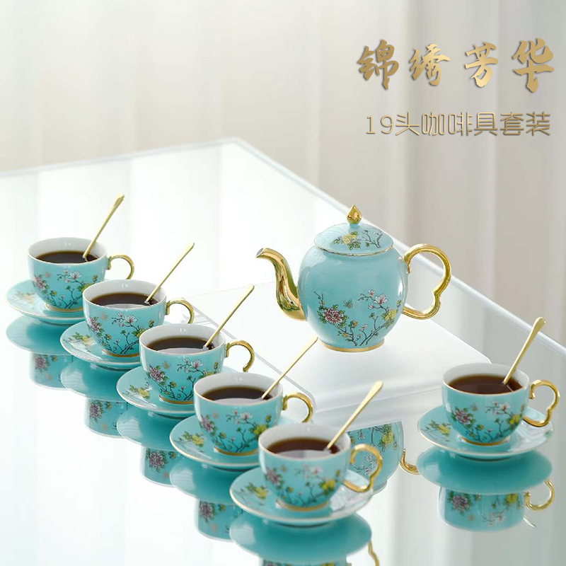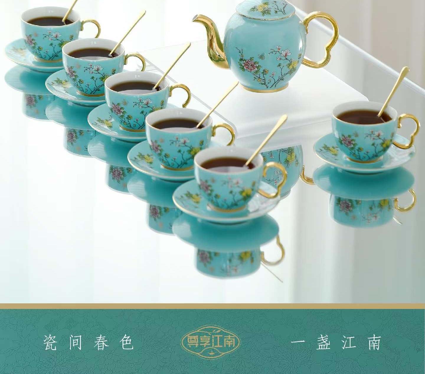 尾桥下窑尊享江南19头咖啡具大套装英式红茶花茶器会议节日送礼