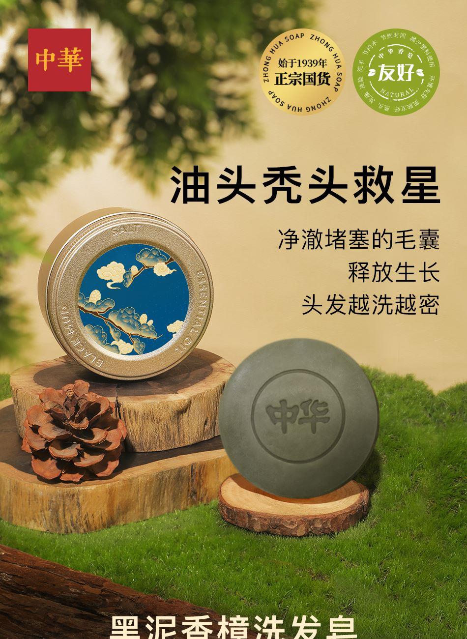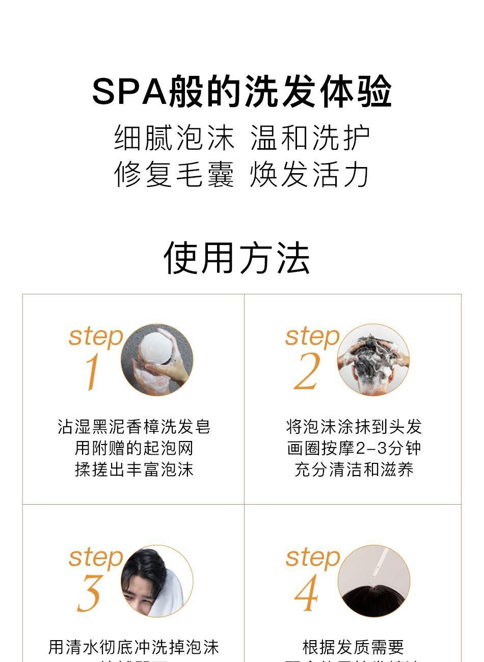 柠檬桉香樟精油盐池黑泥皂,控油蓬松,净澈堵塞的毛囊。 平衡油脂分泌,黑泥的温热效应和多种矿物质,促进循环更新,滋养生长。