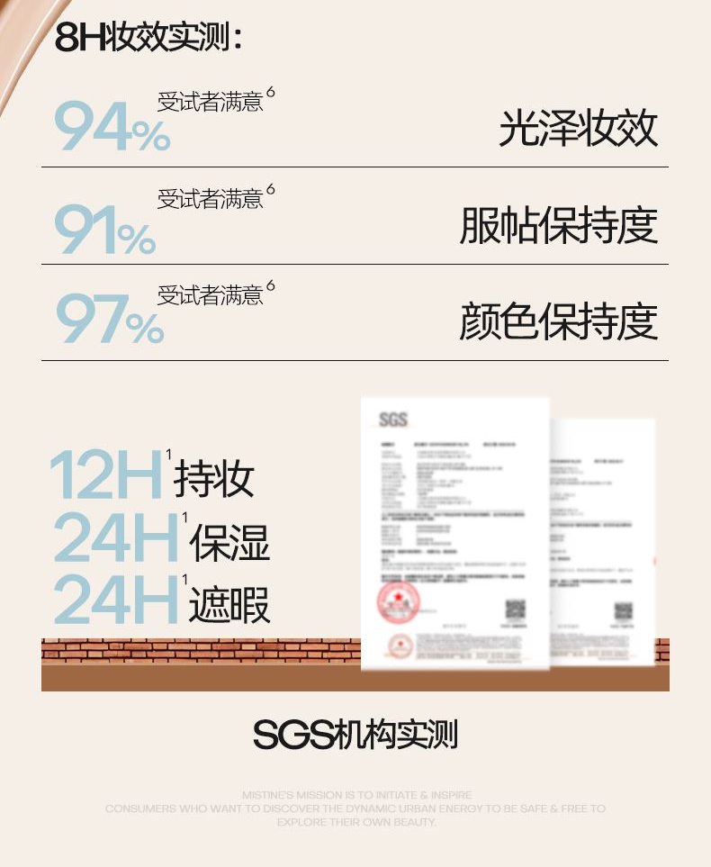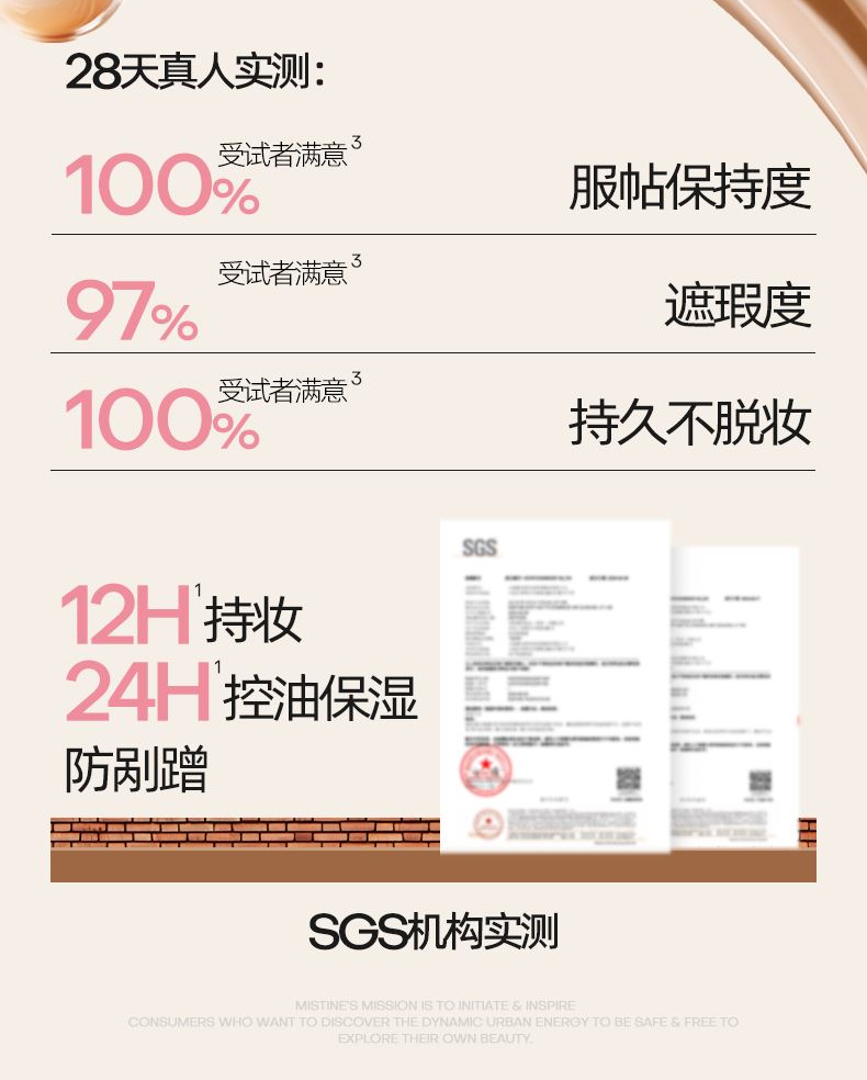 1.奶润 两万目网纱科技处理工艺,超柔软触感 料体与精华同时被细细过滤后筛出,上妆好像上面霜 2.细腻 40MM直径内大约有25000个微小孔径 出料更细密,铺开底妆好像会呼吸 3.遮瑕 2.29mm/s出料速度,出料更细更多 多倍遮瑕,柔焦平整肌肤,瑕疵看不见 创新加入“抛光珠”粉体* 薄薄一层,给肌肤做一次抛光SPA p 在粉底液使用前中后,不断自动化研磨,冲散集聚粉体,使得粉质 细腻丝滑易延展; p 同时粉体表面进行“抛光工艺处理”,粉体自带通透感,上脸给肌 肤做一次抛光SPA,上妆无遮盖粉感,只见通透光感