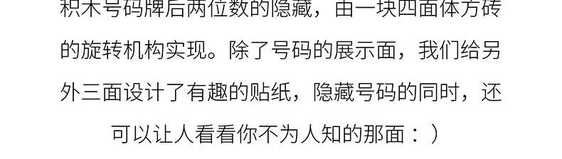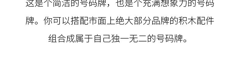 产品尺寸:112*33*16 MM 产品重量:45 G 包装尺寸:150*200 MM 产品材质:ABS 产品颜色:白色、黄色、红色、蓝色 产品特点:可根据自己的喜好,把每个喜欢的积木装在底座上,过百种的拼搭方式,耐高温,暴晒不变形,轻松隐藏增加私密性。优质3M无痕胶,颠簸不掉落。 请知悉:停车牌不包含产品图上的装饰件/小人