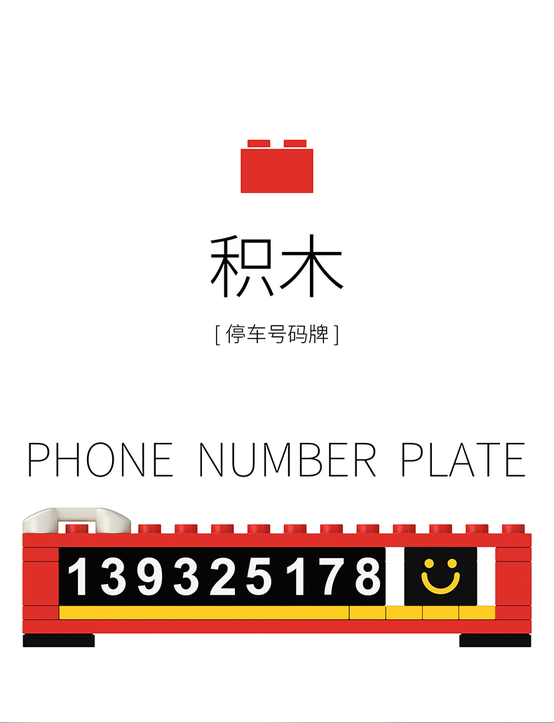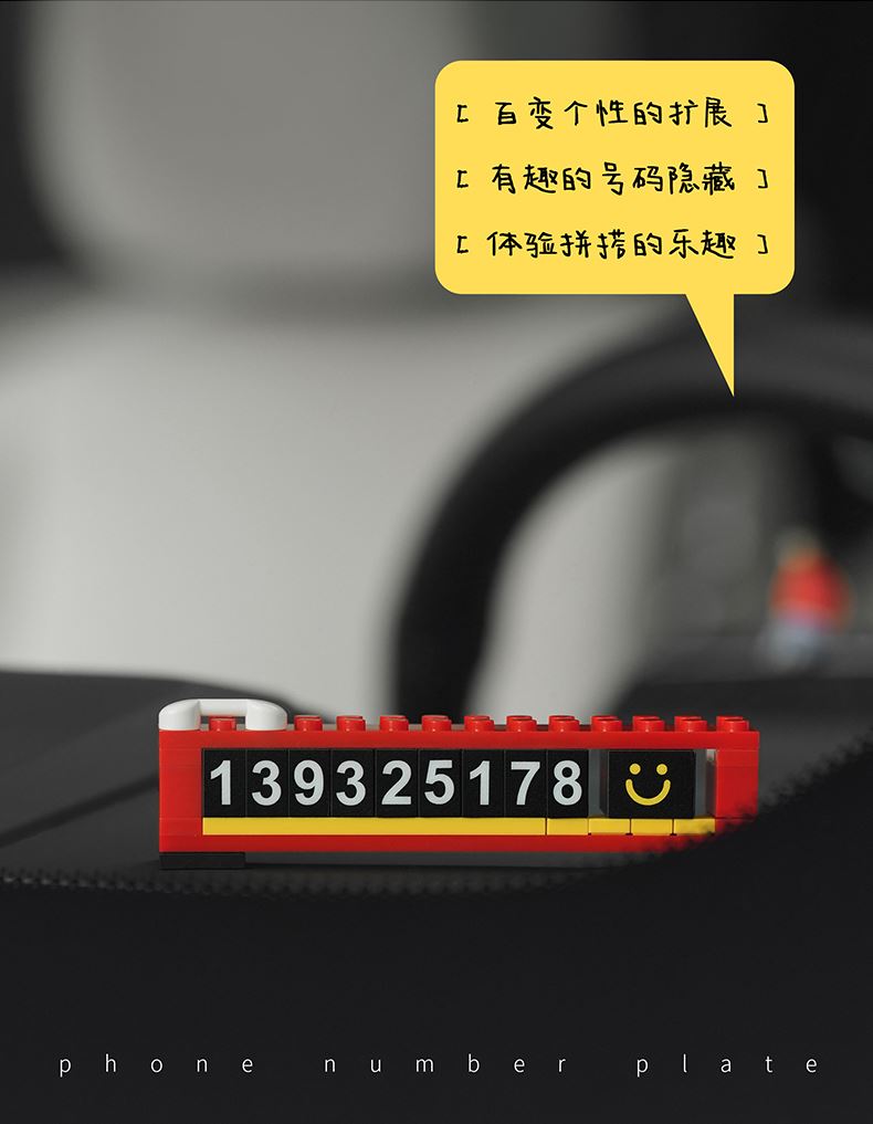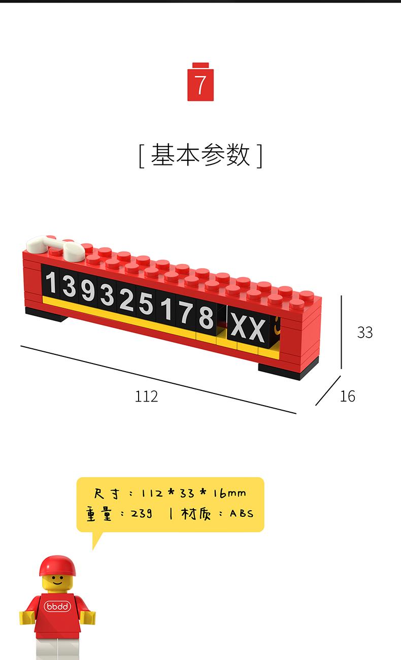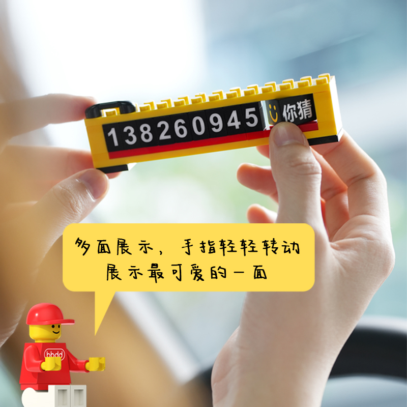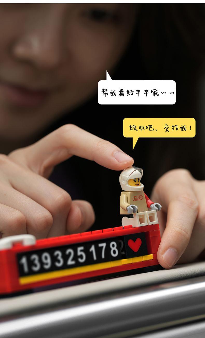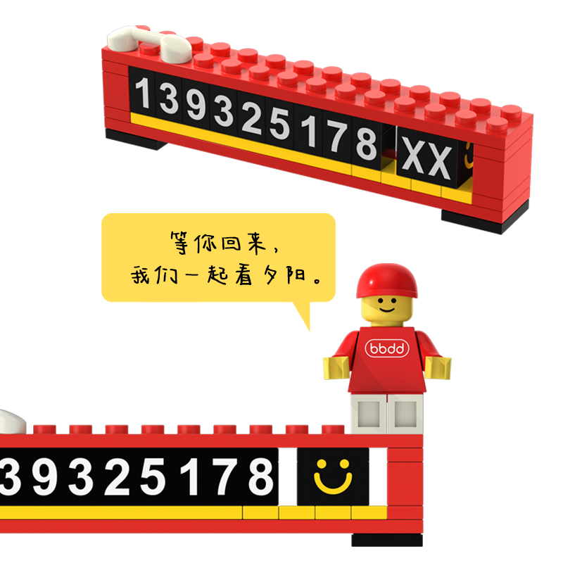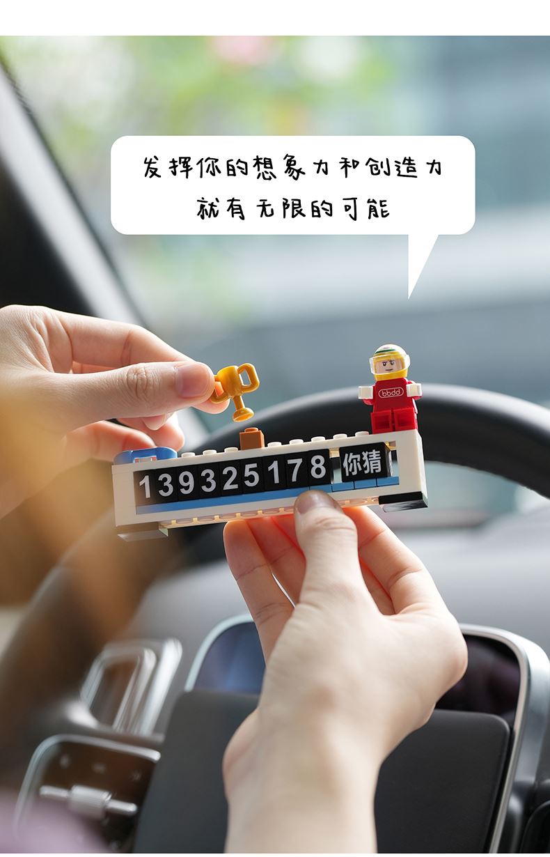 bbdd积木临时号码牌挪车电话移车内拼搭乐趣汽车创意停车牌