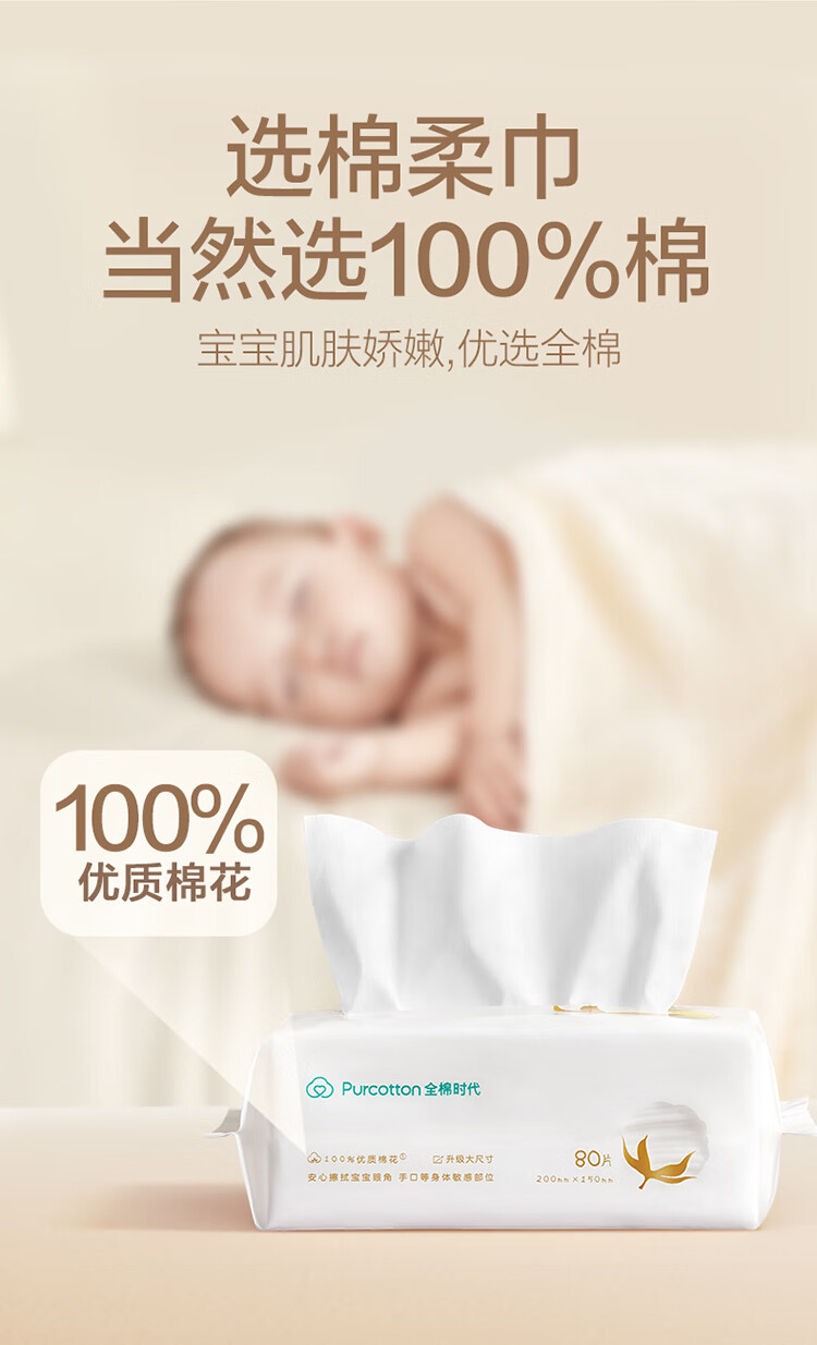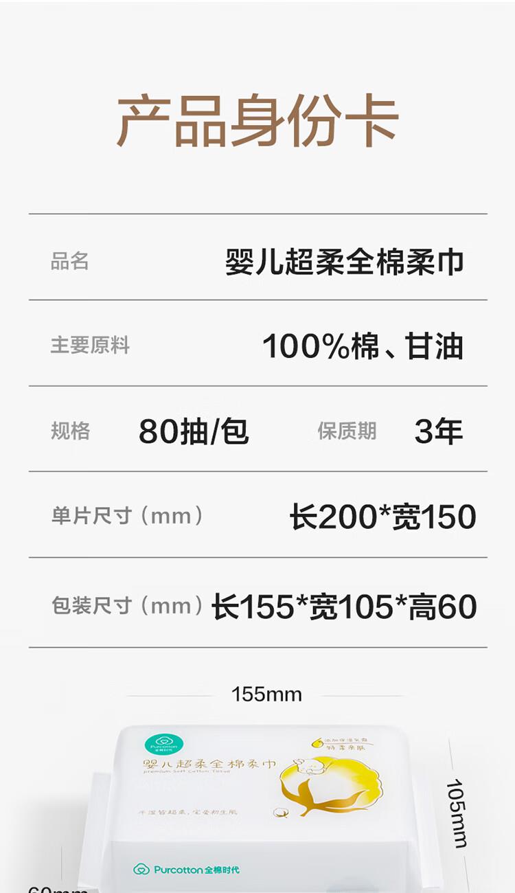 全棉时代婴儿超柔纯棉柔巾50gsm,150X200mm,80片/包,6包/袋 悬挂装 尺寸:棉时代婴儿超柔纯棉柔巾50gsm 数量:80片/包,6包/袋 产品说明:悬挂装