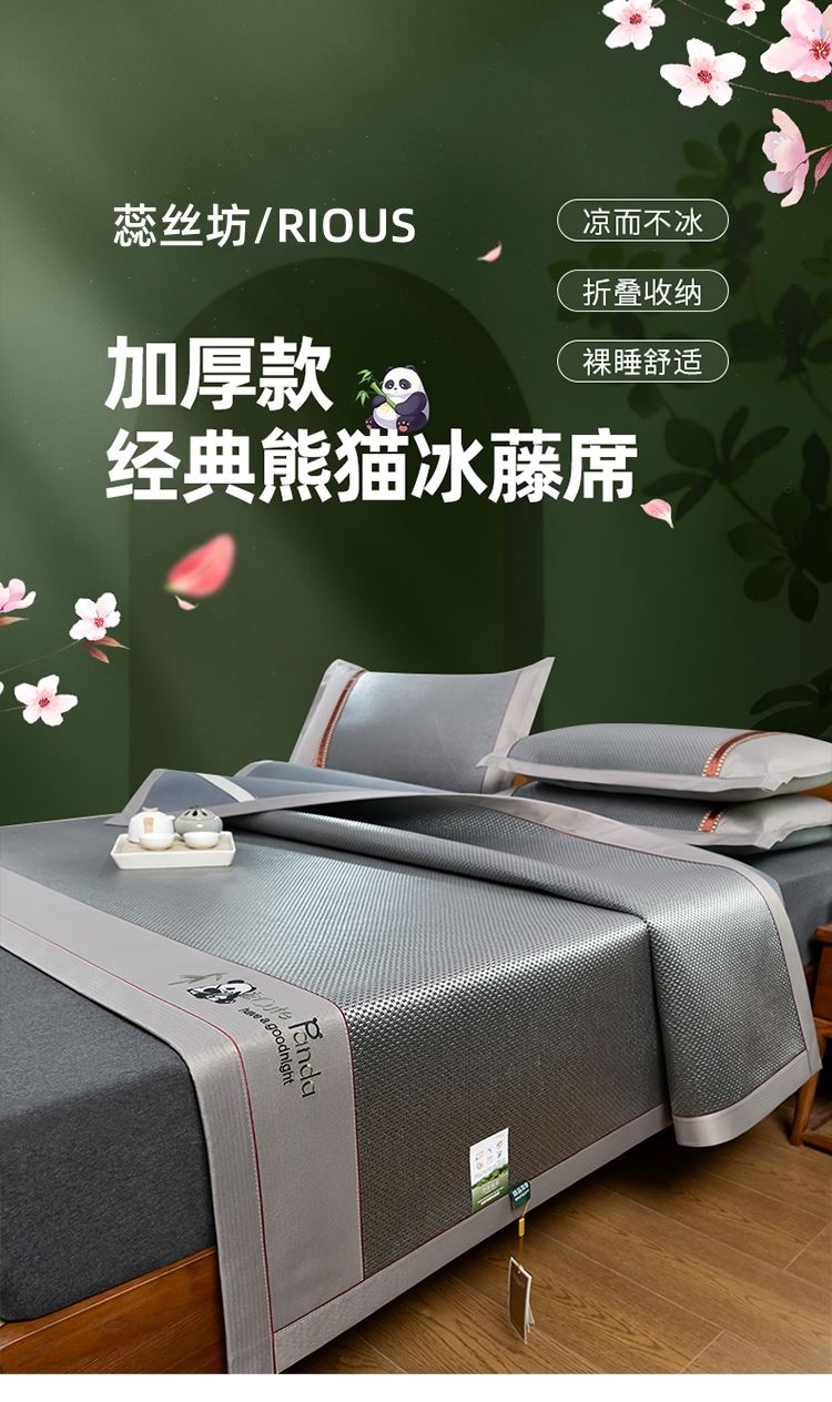 • 蕊丝坊家纺加厚款经典熊猫冰藤席三件套150*200cm