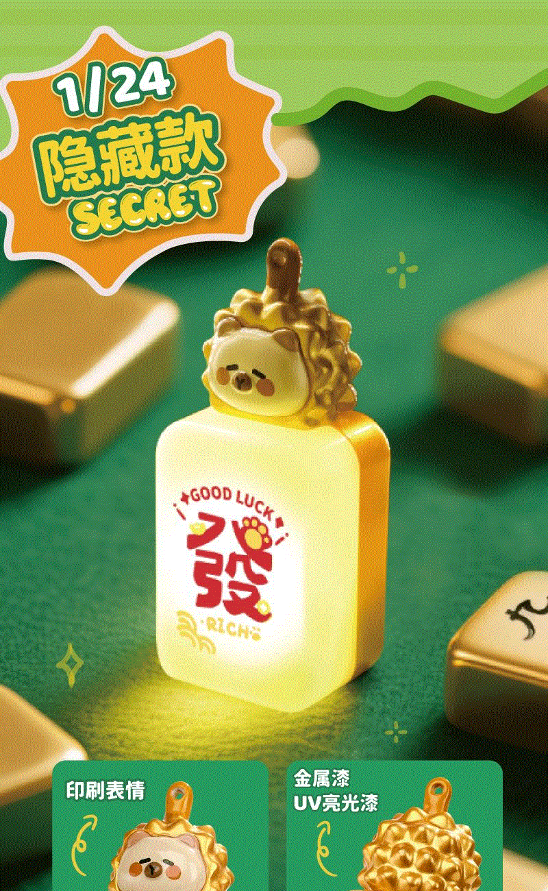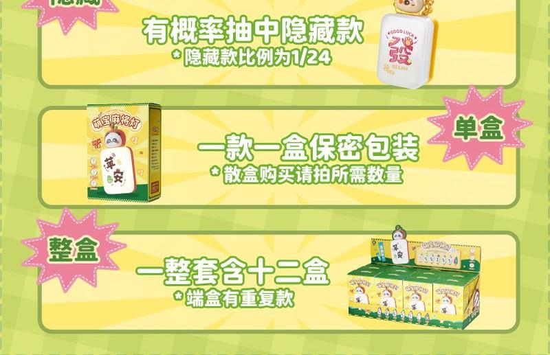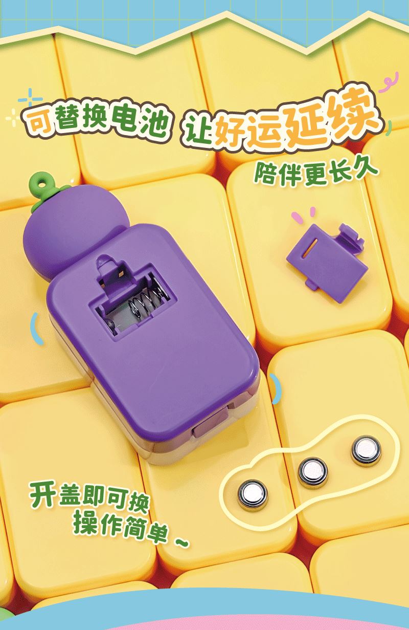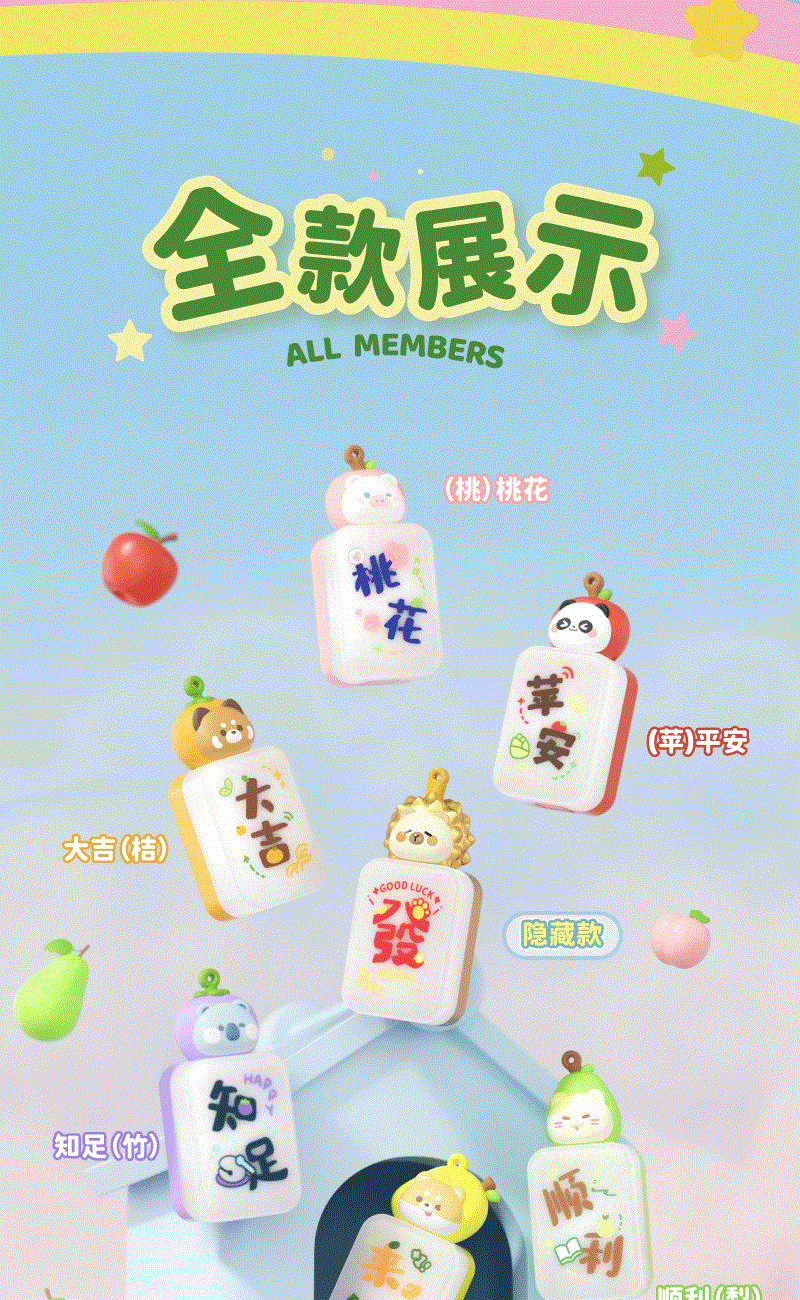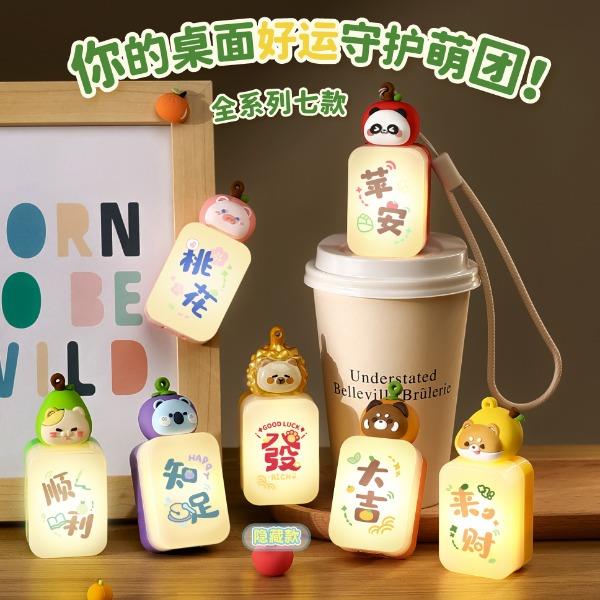 产品材质:ABS+PC+PVC 产品型号:TL58 出货方式:盲盒 款式:苹安,桃花、顺利、知足、大吉、来财、发(隐藏款) 额定功率:0.1W 档位:一档 额定电流:0.023A 电池类型:三颗纽扣电池 额定电压:4.5V 产品重量:约35g 产品尺寸:约36x26x82mm 彩盒尺寸:约46.5x84x114mm 毛净重:60.5/31.1g 整箱毛净重18.2/16.5KGS 备注:本产品半箱起发
