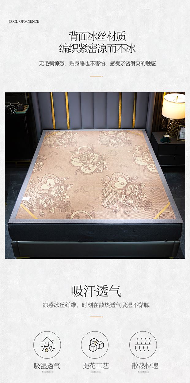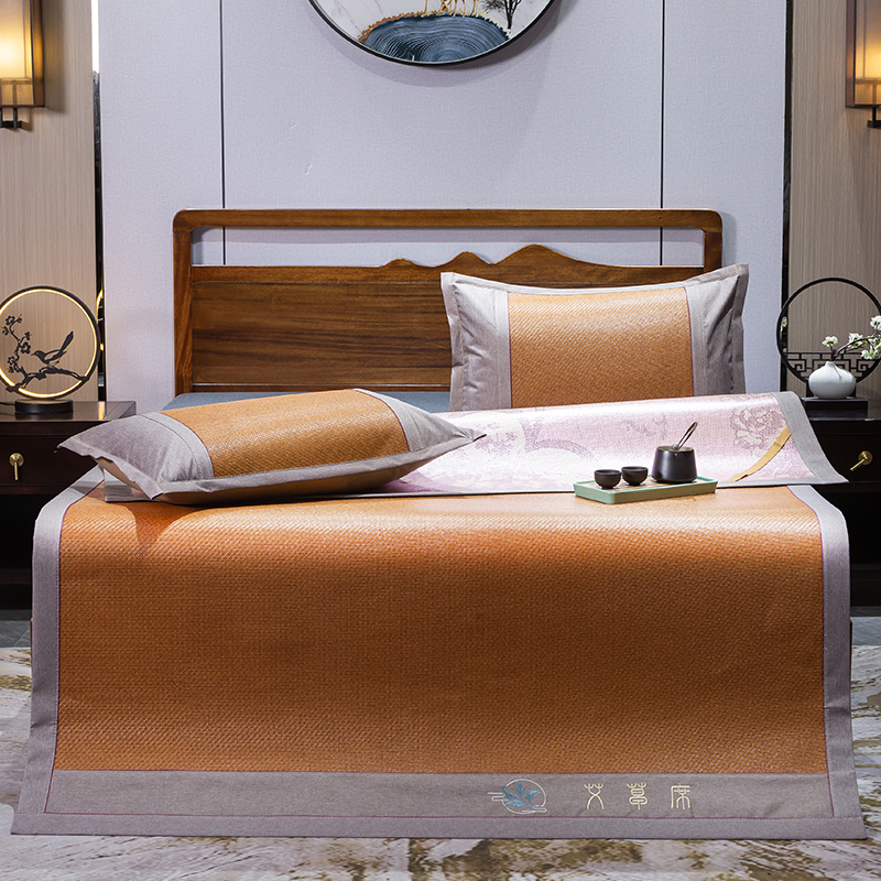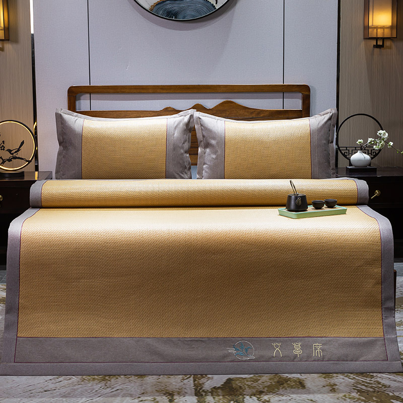 花花公子-家纺-艾草刺绣可折叠加厚养身凉席藤席三件套
