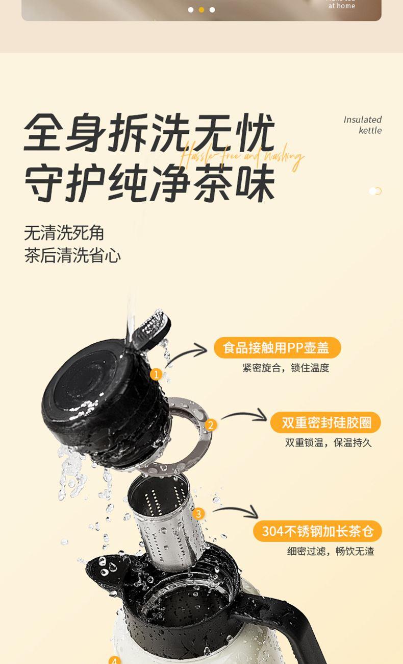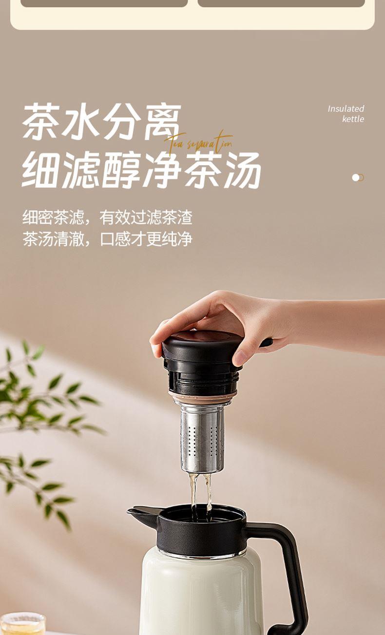 容量:2200ml 材质:316L奥氏体不锈钢 316L进阶选材,高标准,放心用。 茶水分离,细密茶滤,有效过滤茶渣。 一键轻松直倒,U型聚流壶嘴,倒水防飞溅。 全身拆洗无忧,无清洗死角。
