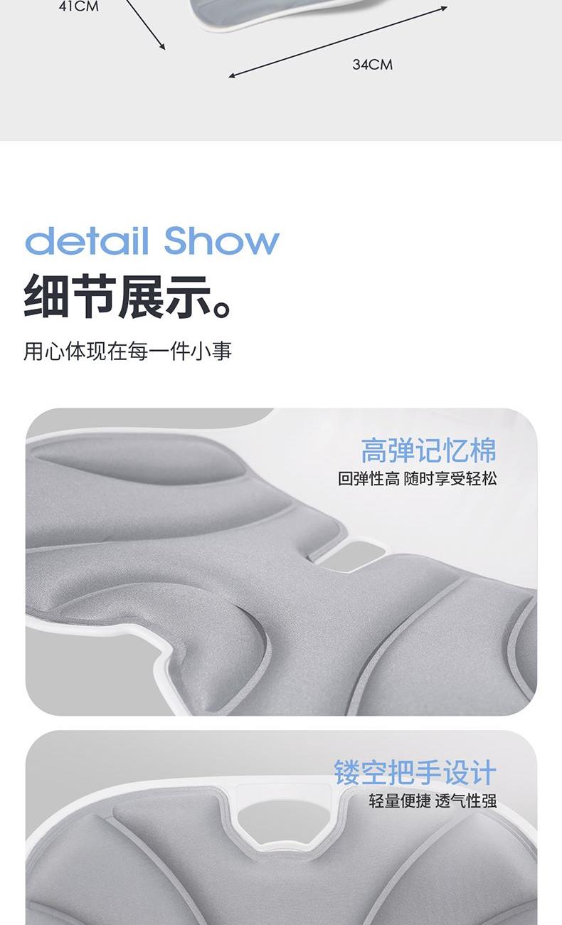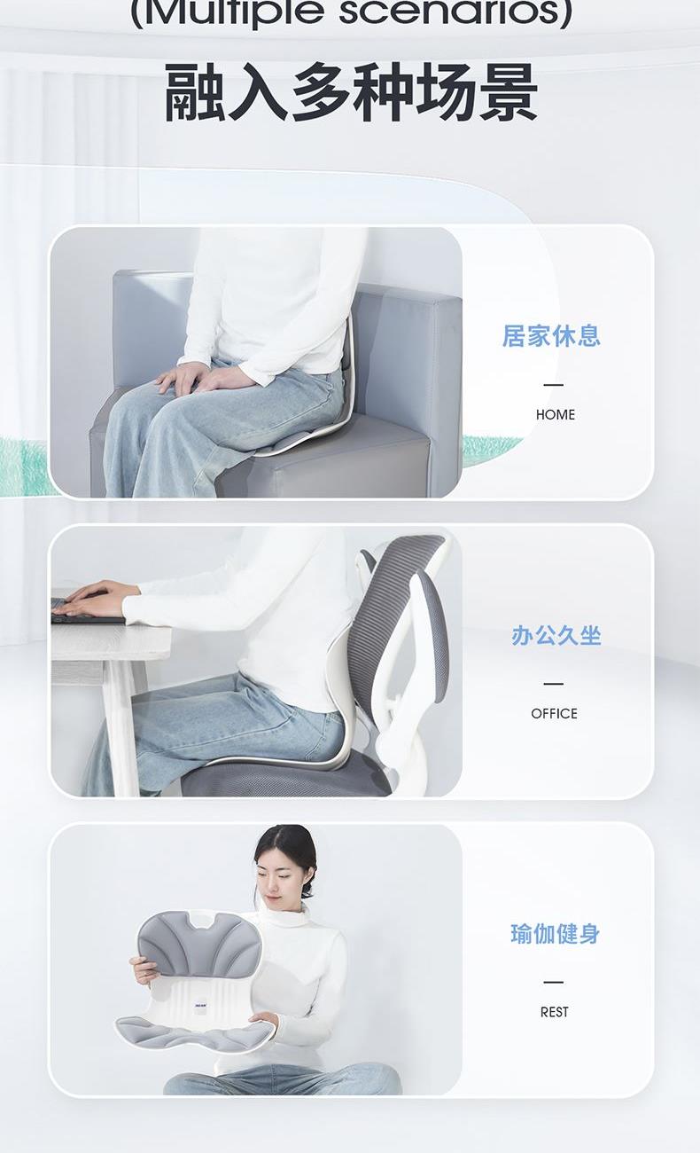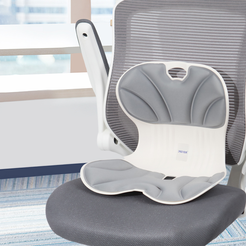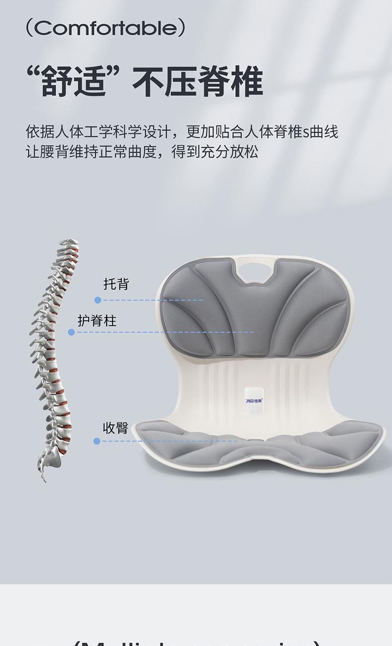 颜色:灰色 产品特点:①三位一体,全天舒适支撑 ②护脊舒腰,办公久坐不累 ③杠杆原理,黄金分割比例
