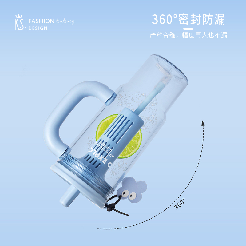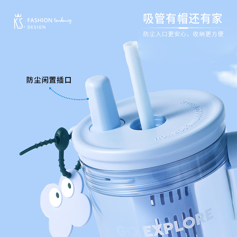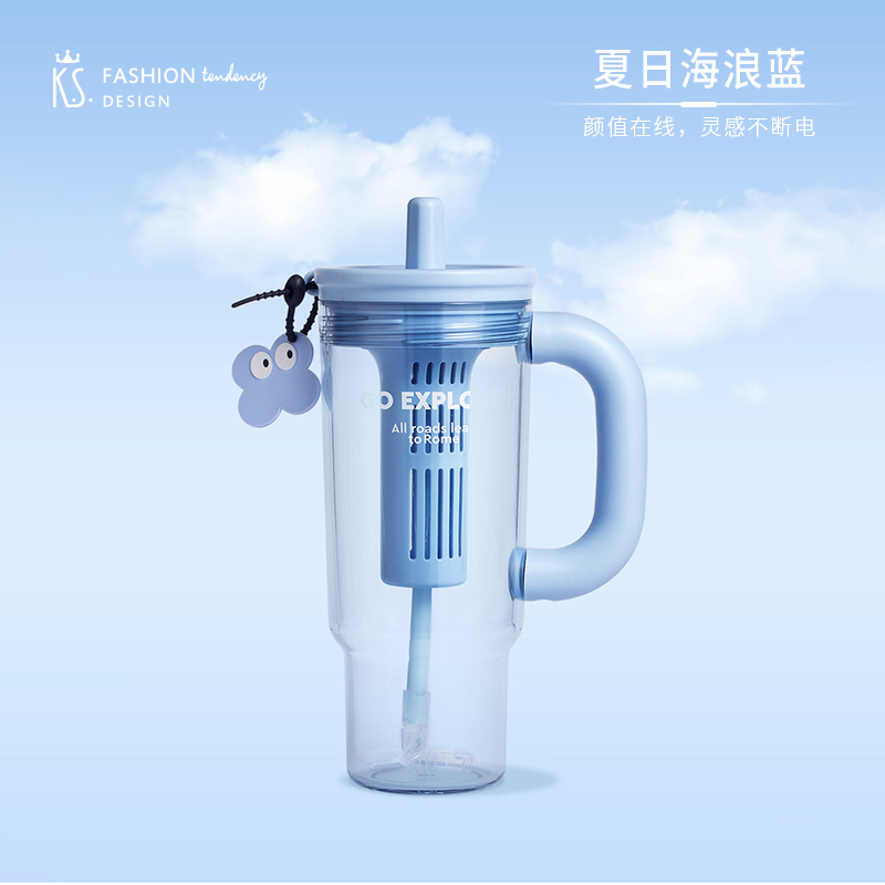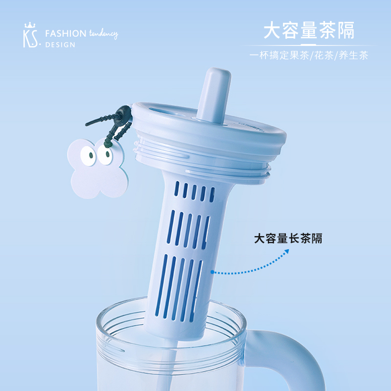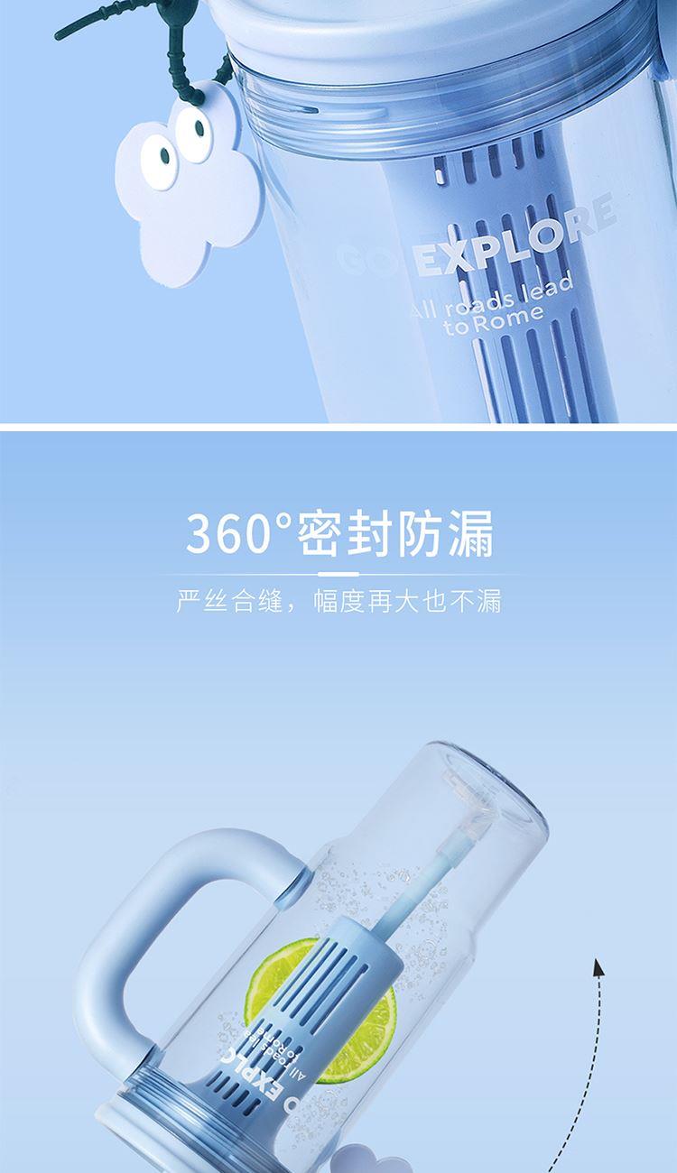 材质:杯体: PC 上盖、饮口:聚丙烯PP硅胶圈/甲基乙烯基硅橡胶混炼胶 规格:650ML 包装:彩盒 1.650ml大容量: 畅饮更尽兴,夏日补水/冷饮一杯搞定。 2.人体工学把手设计: 握持稳固舒适,单手操作更轻松。 3.专属吸管收纳帽: 饮用畅快,收纳卫生便捷。 4.可拆卸茶仓: 轻松泡制果茶/花茶,清爽方便。