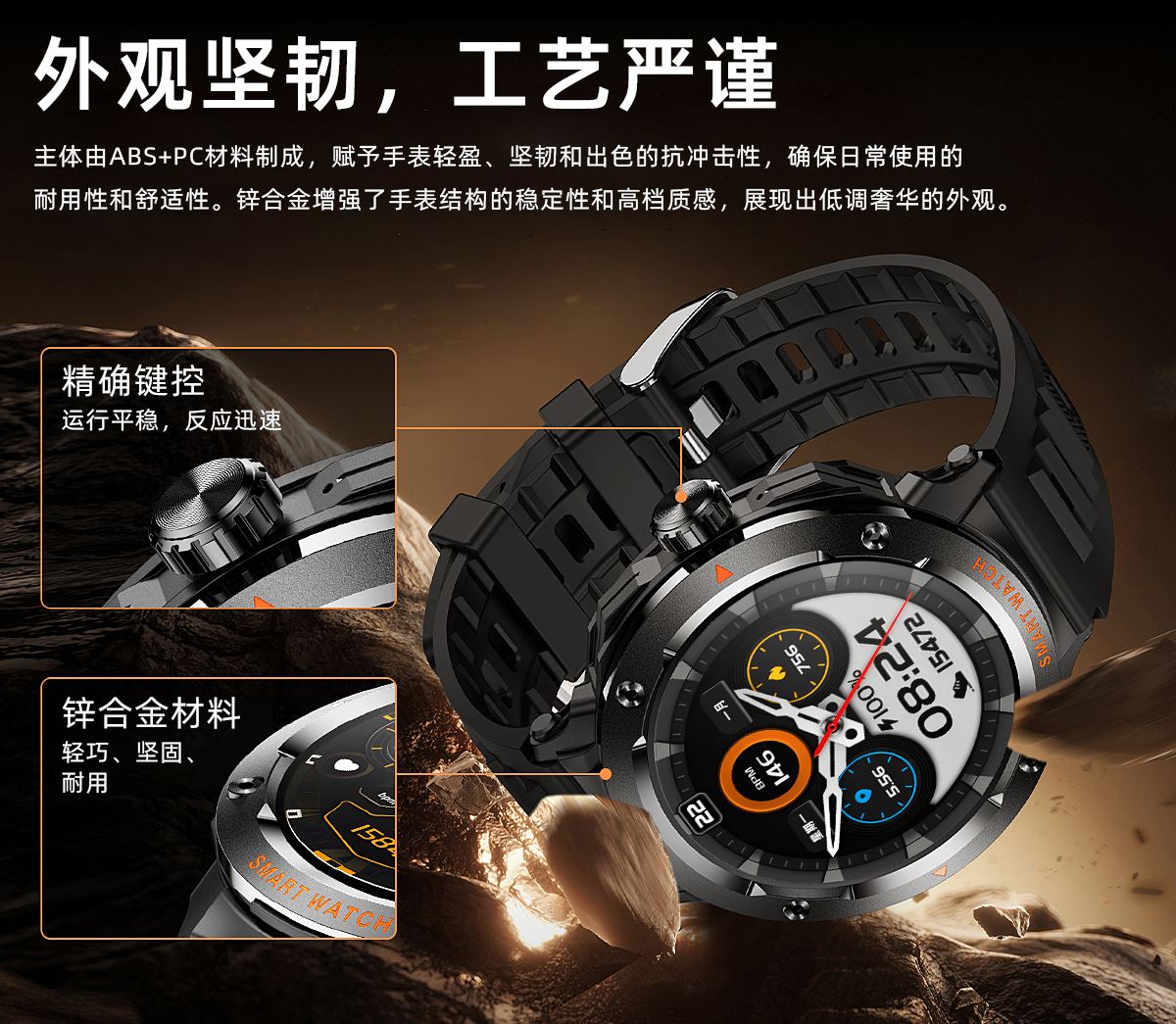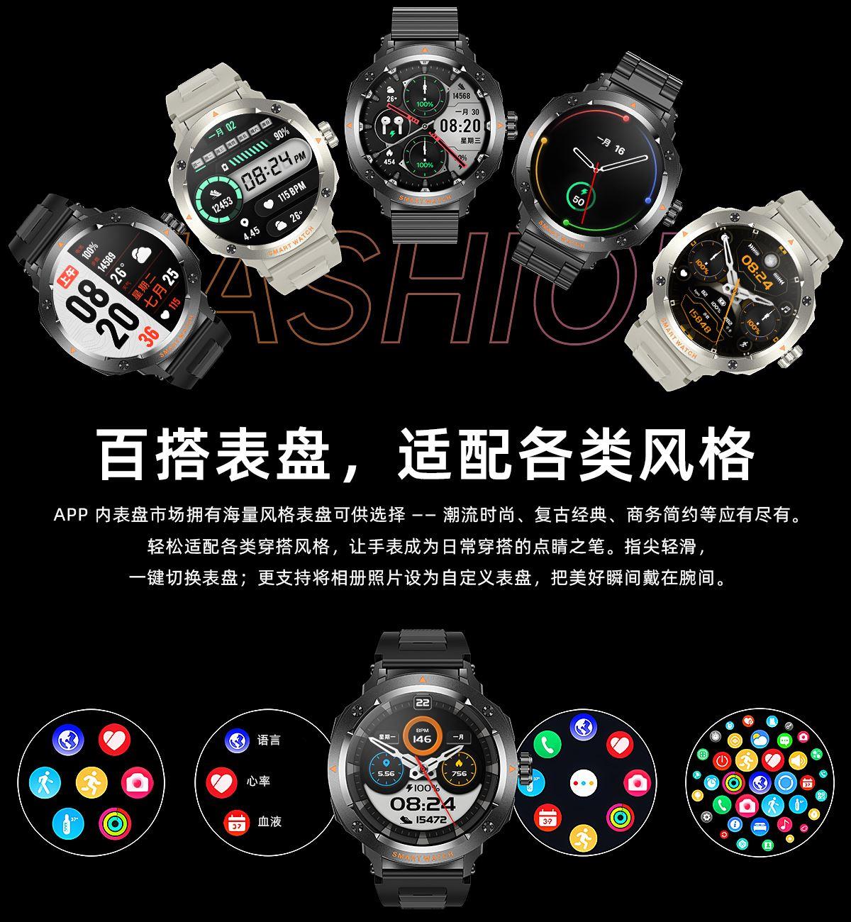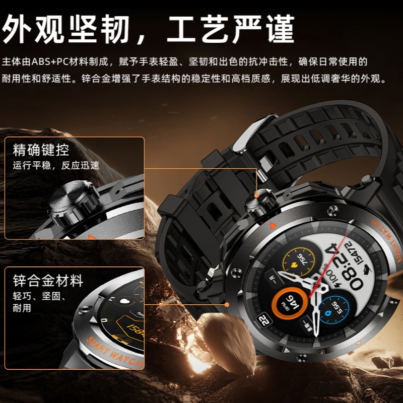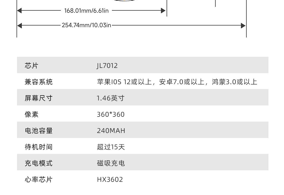 CPU:JL7012 屏幕尺寸:1.46TFT、360*360 使用时间:3-5天 充电方式:磁吸式 电池容量:充电仓240mAh聚合物锂电池、耳机28mAh聚合物锂电池 智能手表尺寸(mm): 产品材质:ABS+PC、硅胶表带、锌合金 产品净重:68.20g 裸机 APP: FaceLink 防水等级:IP67 产品清单:手表+充电线+说明书+包装盒 1.46TFT、360*360、充电仓240mAh聚合物锂电池、耳机28mAh聚合物锂电池、NFC、APP个性自定义表盘、手表6种UI界面切换、通讯录、蓝牙拨号通话、健康监测(心率、血氧、血压、睡眠)、运动数据(计步、距离、卡路里)、室内运动(俯卧撑、室内跑步、平板撑、室内单车、跳绳、瑜伽、战绳、仰卧起坐、椭圆机)、户外运动(户外步行、户外跑步、户外骑行、登山、羽毛球、篮球、足球)、提醒(信息、久坐、喝水、闹钟)、天气、呼吸训练、摇摇拍照、秒表、查找手机、 抬腕亮屏、常用联系人、床头灯、日历、计算器、计时器、音乐控制、(短信、来电、微信、支付宝、QQ等)信息提醒