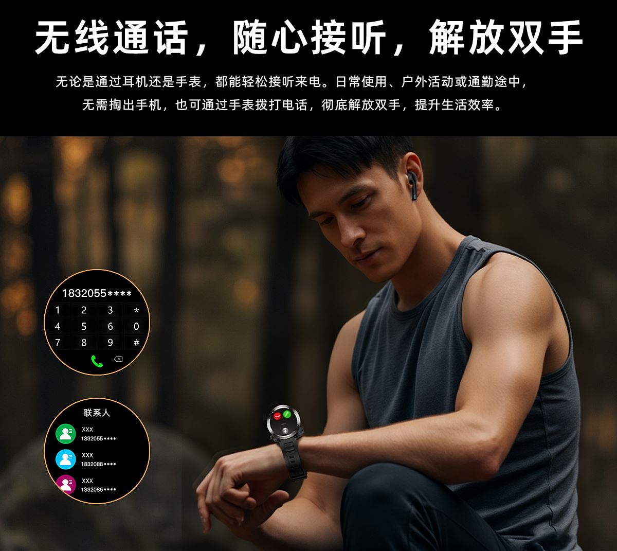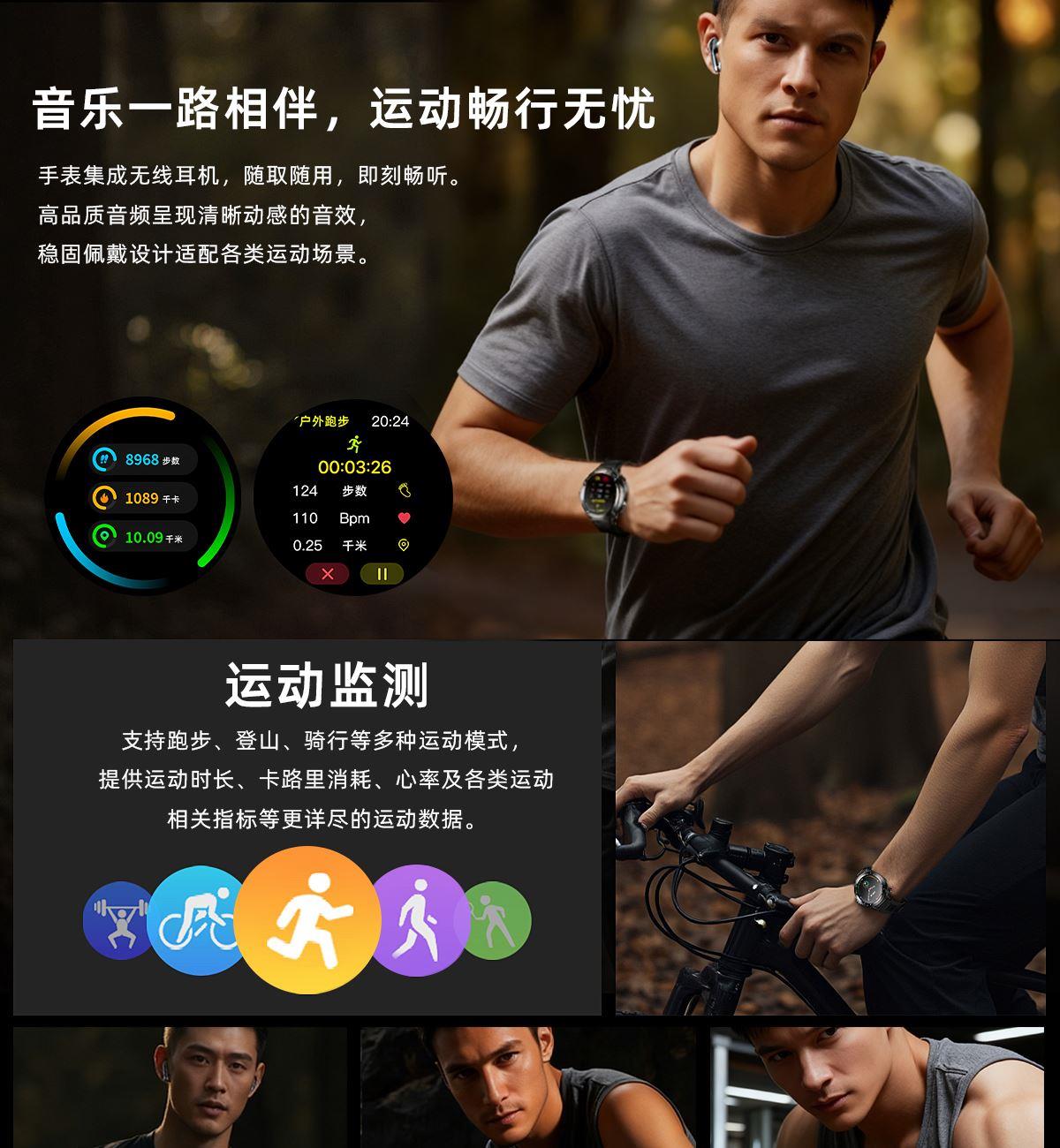 • LIGE利格带耳机二合一运动智能手表BWD13