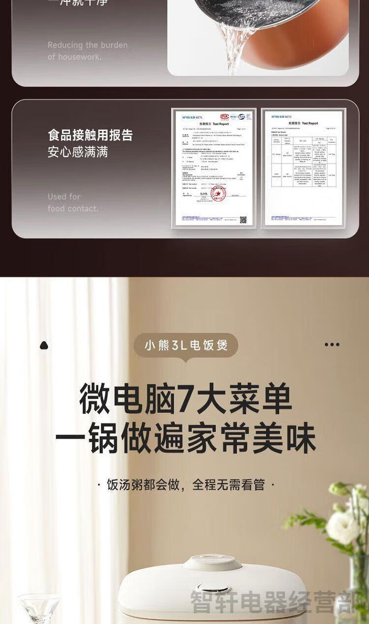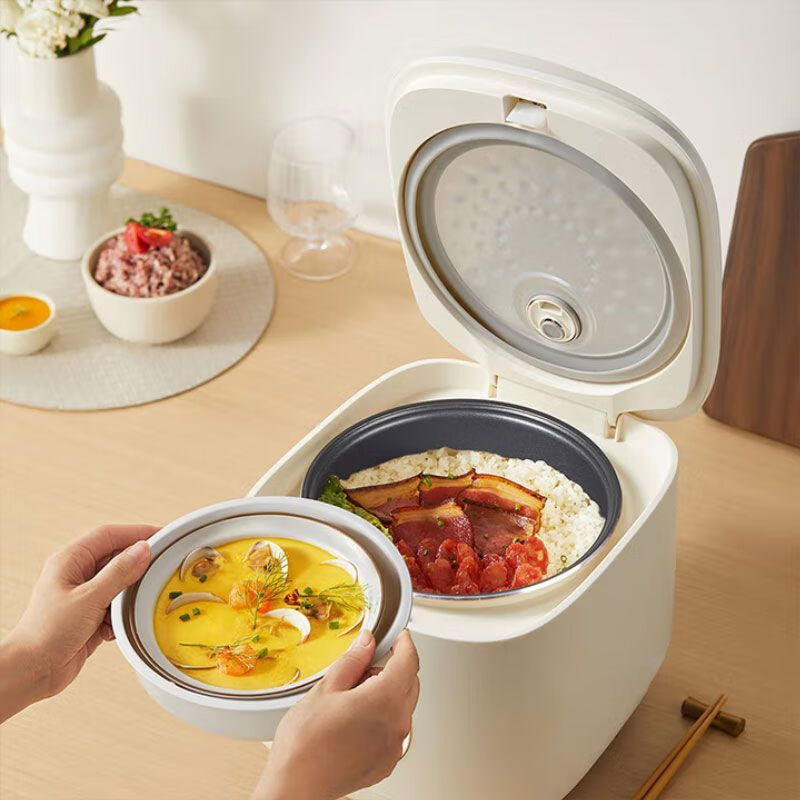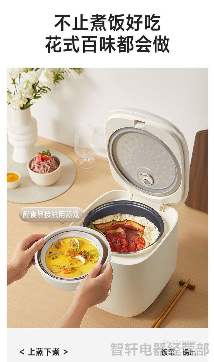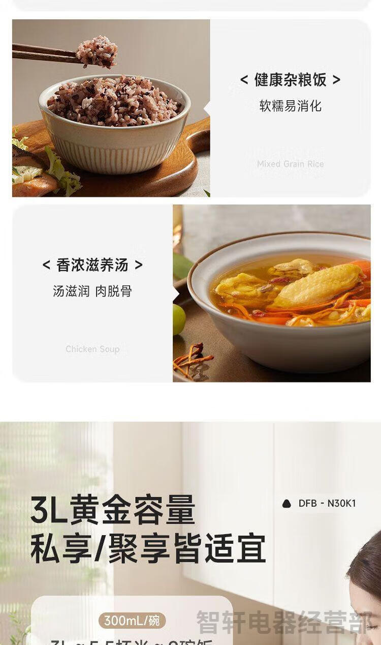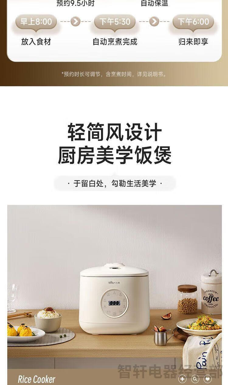 1、6层不粘厚釜加热更均匀 煮饭更香甜 2、不粘易洗一冲就干净 3、专研防溢增香阀 4、饭汤粥都会做,全程无需看管 5、24小时长预约 6、可拆洗上盖污垢无处可躲