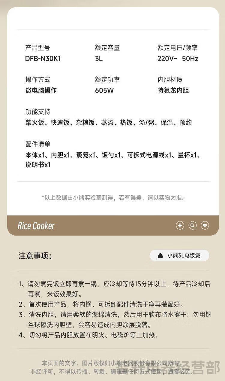 小熊电饭煲DFB-N30K1