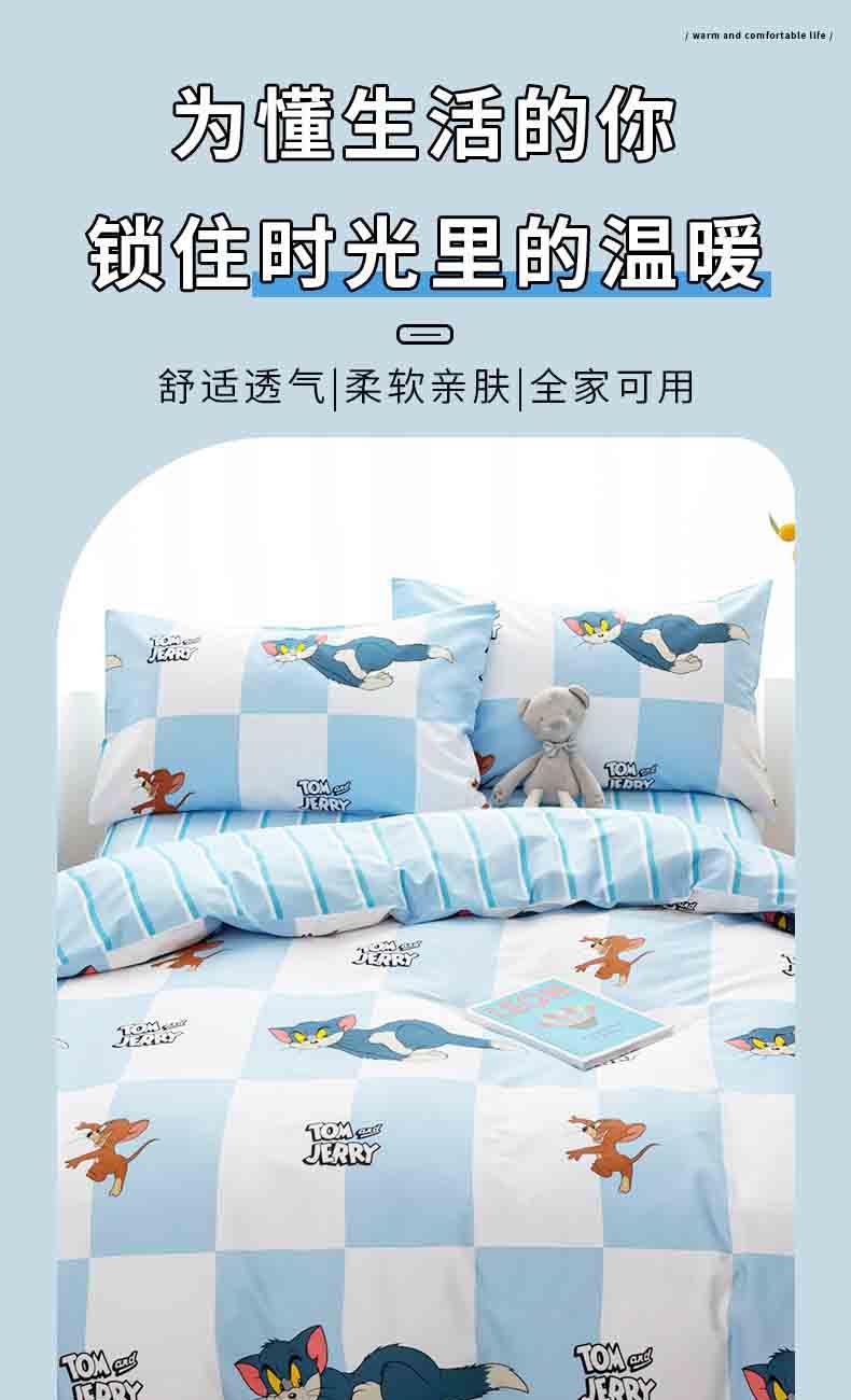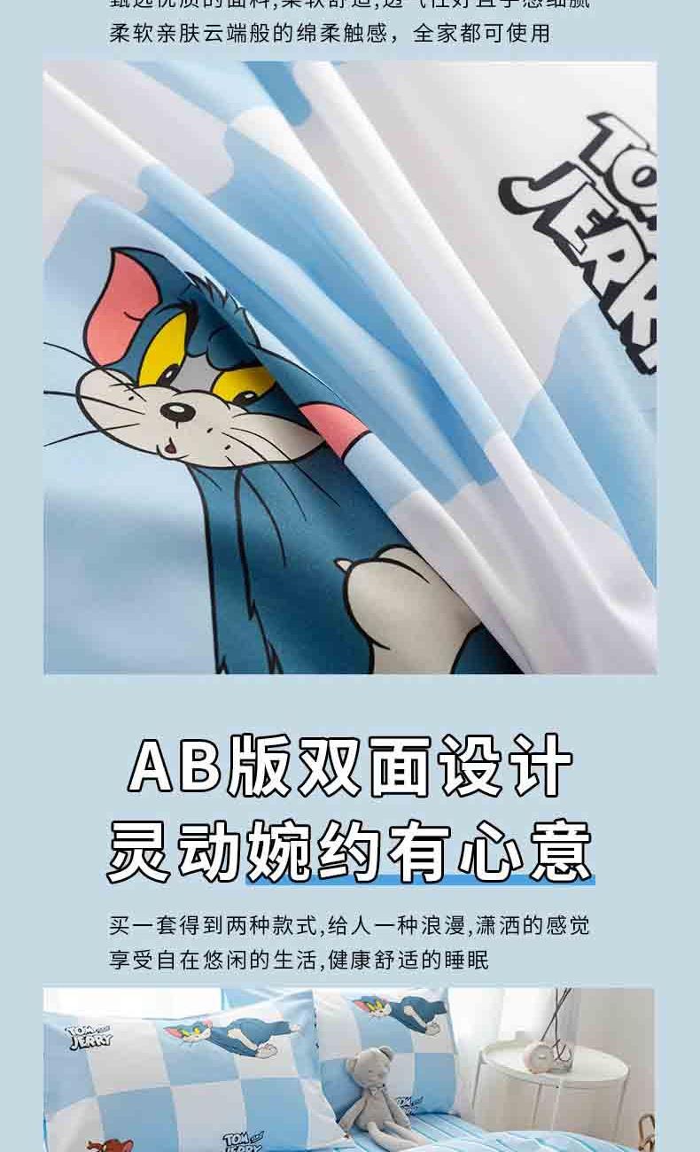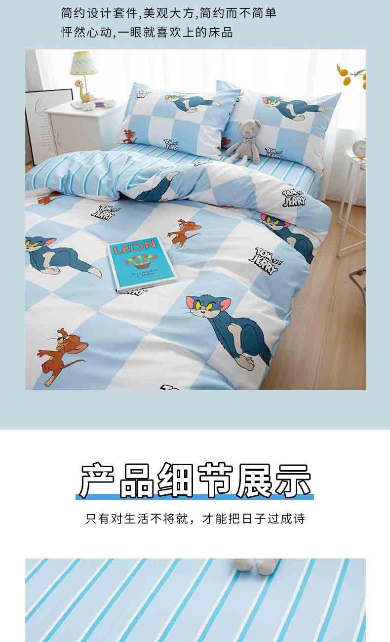 • TomandJerry纯棉四件套-蓝白方格轻奢床上用品送礼
