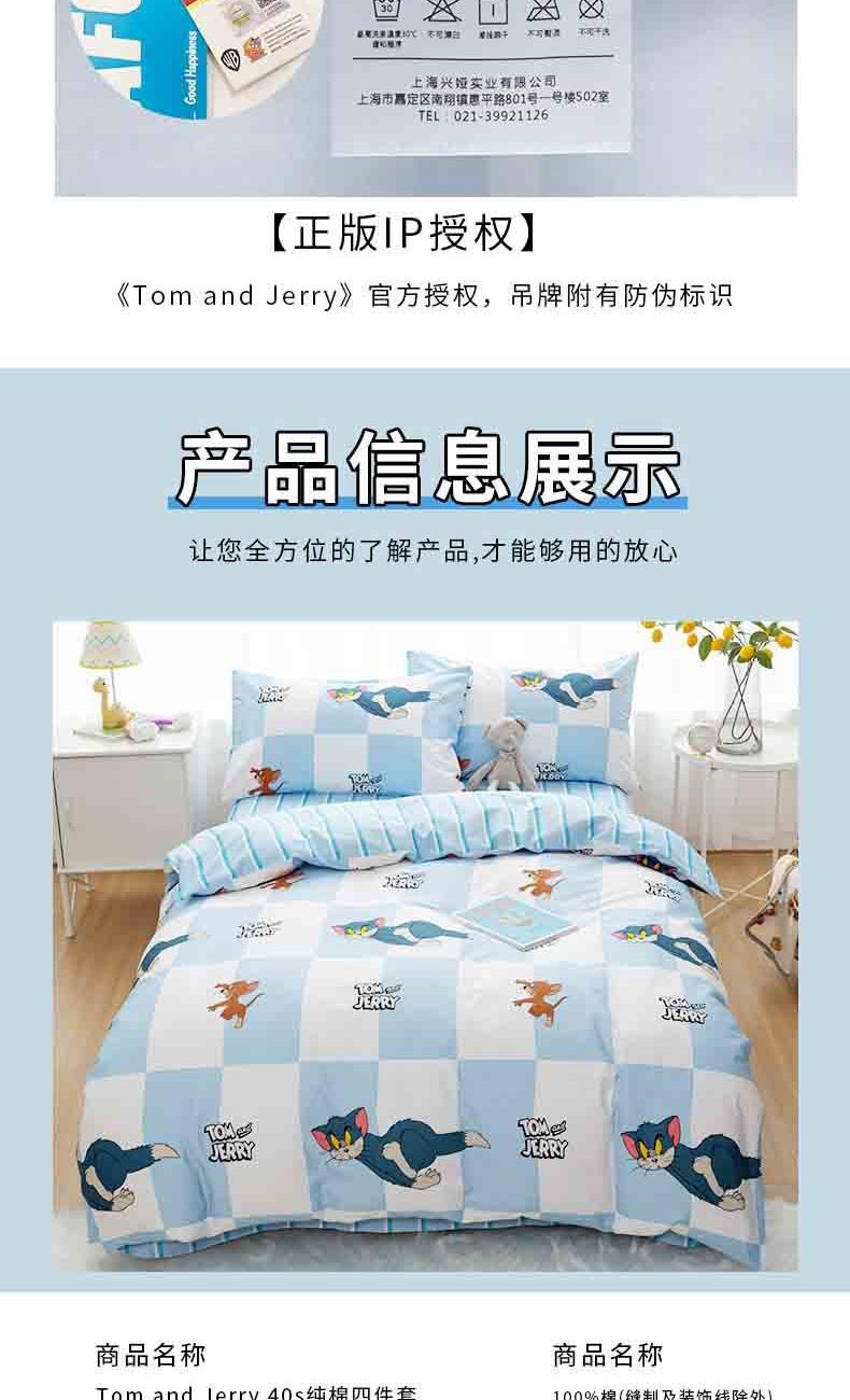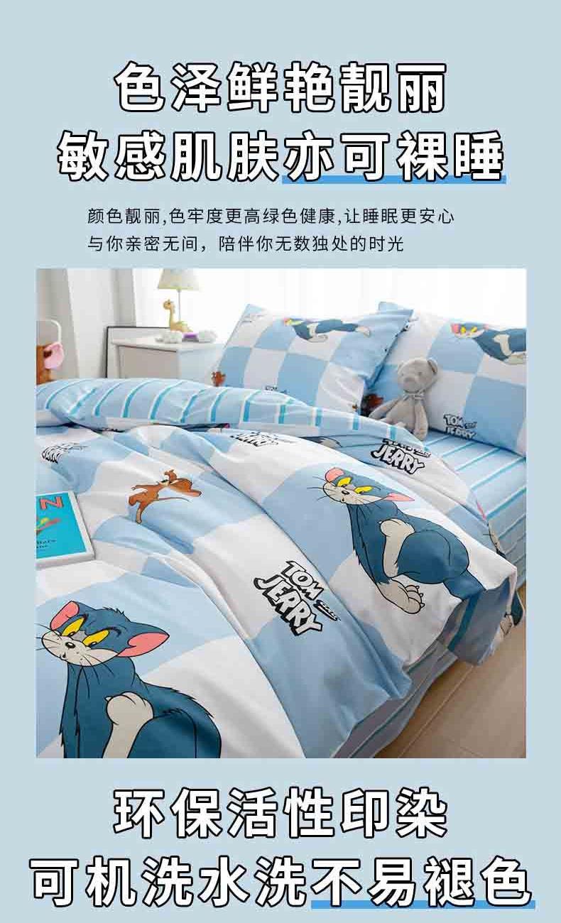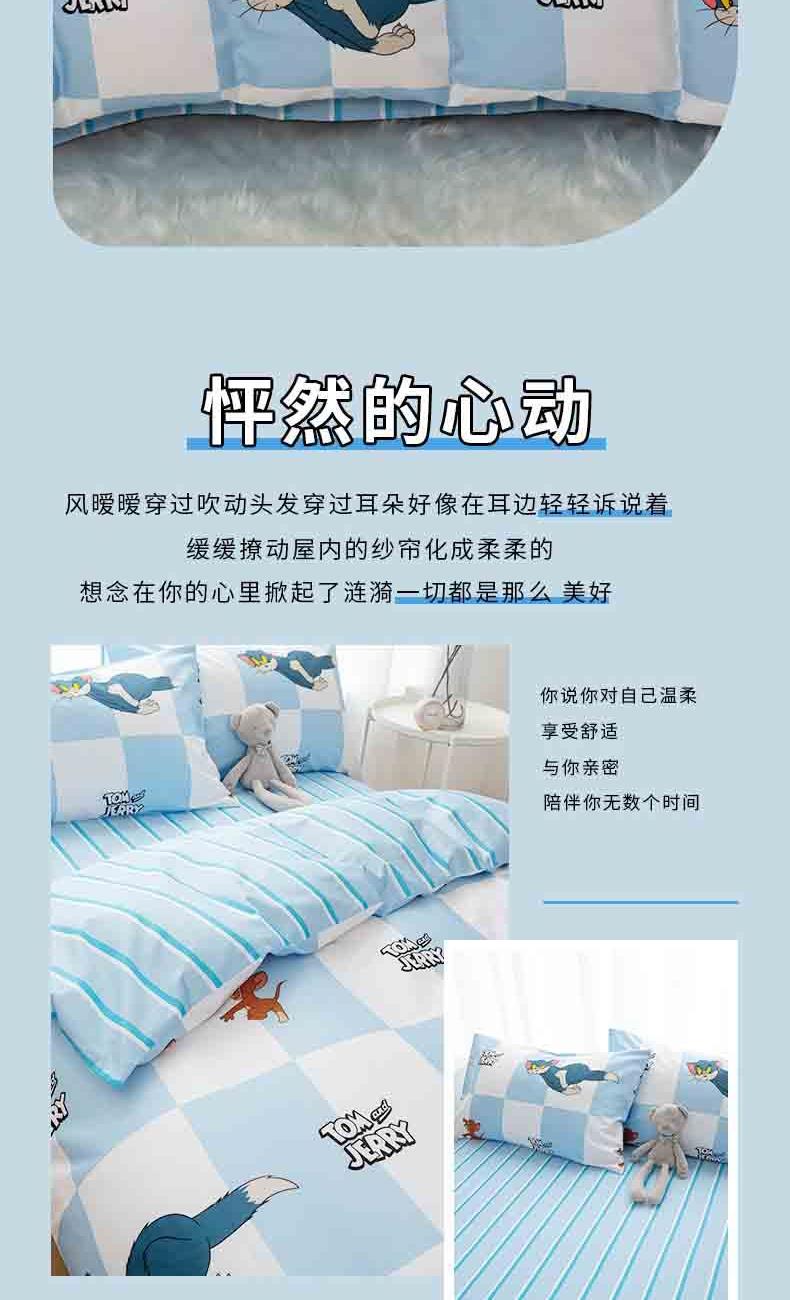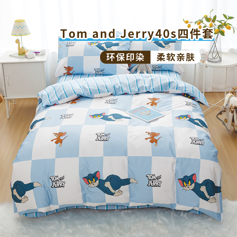 • TomandJerry纯棉四件套-蓝白方格轻奢床上用品送礼