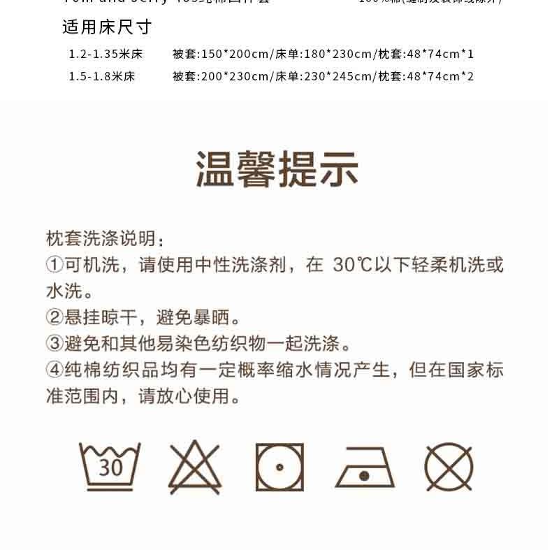 主要材质: 纯棉 其他参数:被套200*230cm床单230*245cm枕套48*74cm*2 产品重量(净/毛重) : 2.1kg 产品尺寸:35*45*5cm 1、纯棉品质:原材料采用天然纯棉纤维,无毒无害,对敏感皮肤友好。柔软、舒适的面料给您提供一夜舒适的睡眠体验。 2、柔软细腻:40S纯棉织造,触感柔软,质感更细腻,同时也更耐久。 3、做工细致,绗缝紧实,不起球无异味。 4、环保活性印染:采用了高品质的染料,多次洗涤后依然鲜艳、不褪色。 5、吸湿透气性好:可有效吸收汗水以及空气中的水分,保持床单和被套的干燥。良好的透气性有助于维持床上的温度,避免过度出汗或过热,使您再夜间睡眠更加舒适。 6、母婴A类标准,儿童孕妇均适用。