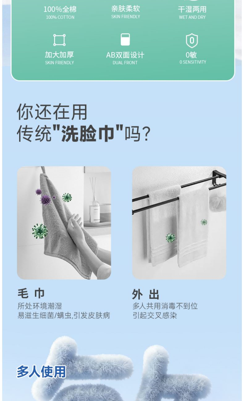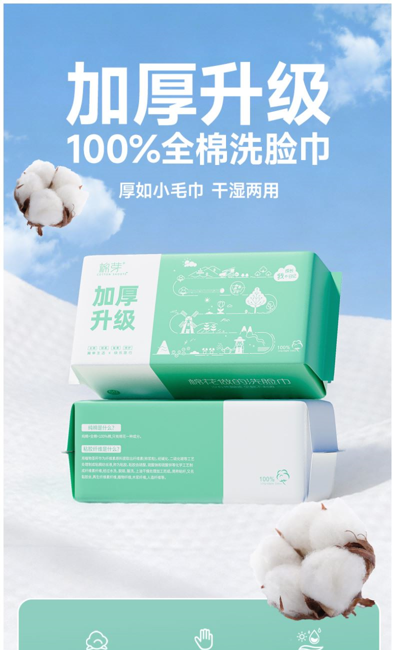 棉芽MY043全棉洗脸巾一次性纯棉加厚加大棉柔巾母婴可用