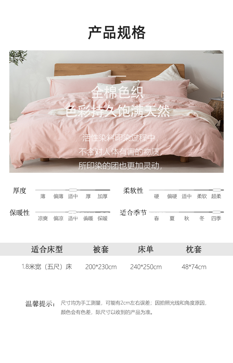 产品编码:JLY25704 产品规格:被套200*230cm 床单 240*250cm 枕套48*74cm*2 面料材质:棉(色织水洗) 净 重:2.9kg 礼盒 尺寸:420*320*95mm