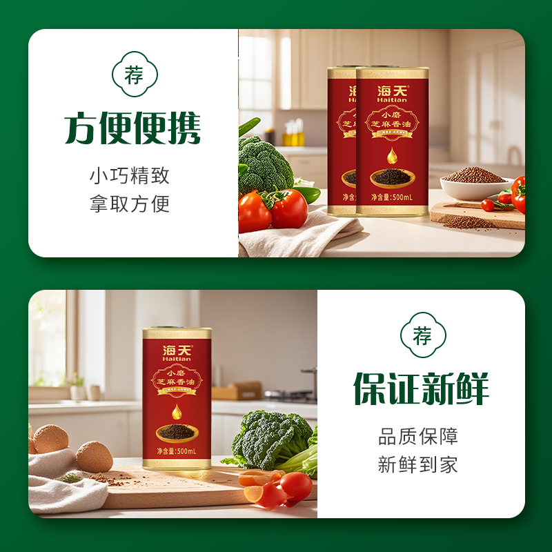 海天食用油非转基因芝麻油2件套(铁罐)HT-Z202T