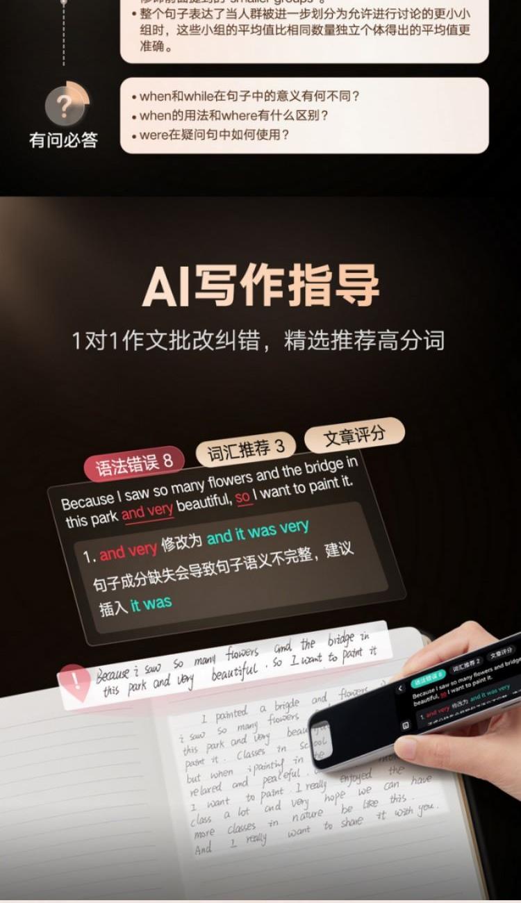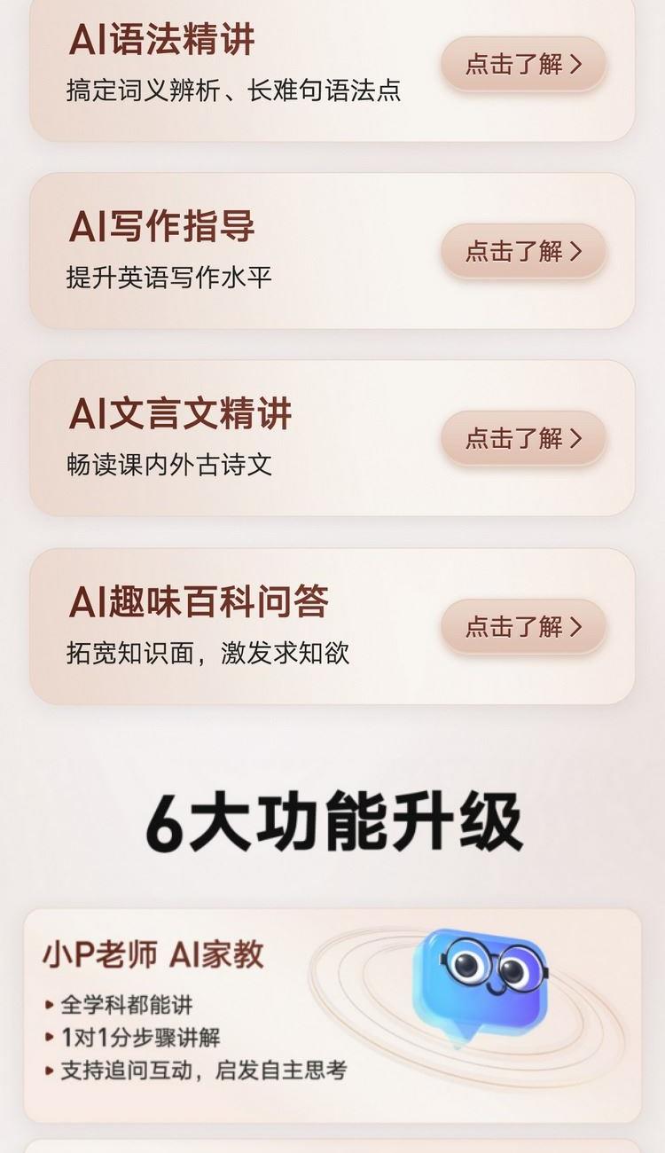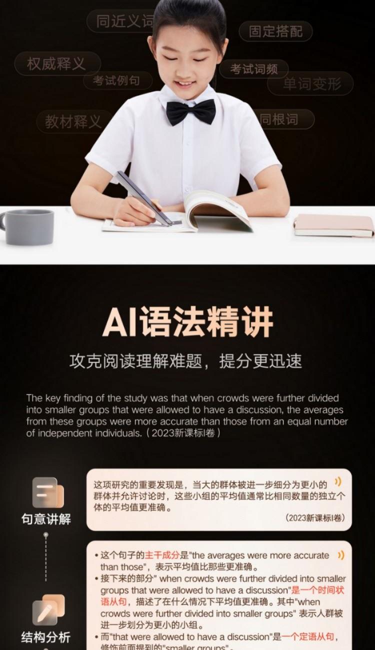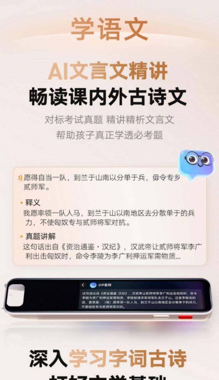 7200万词库,AI大模型翻译 小P老师AI家教,虚拟人口语私教Echo AI摄像头,拍照讲题,拍照翻译,作文批改 0.3秒极速点查,多行同步扫描, 效率翻倍高效学习不用等