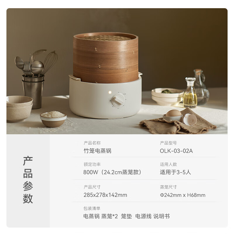 olayks.立时2L两层竹笼电蒸锅DZG03003