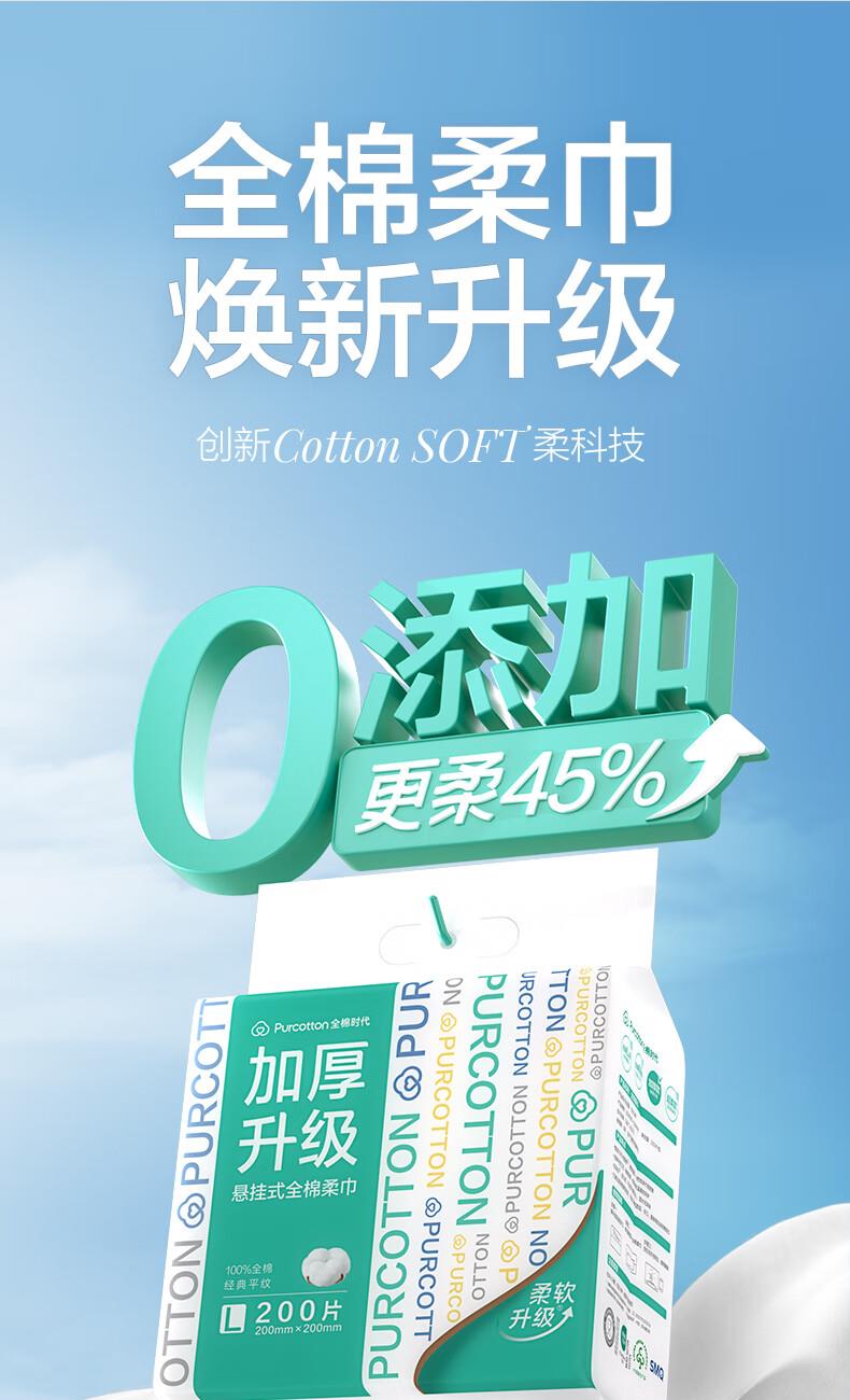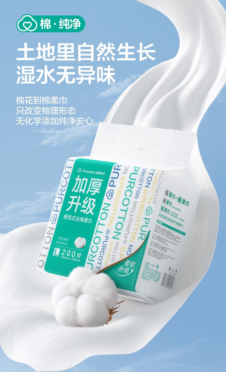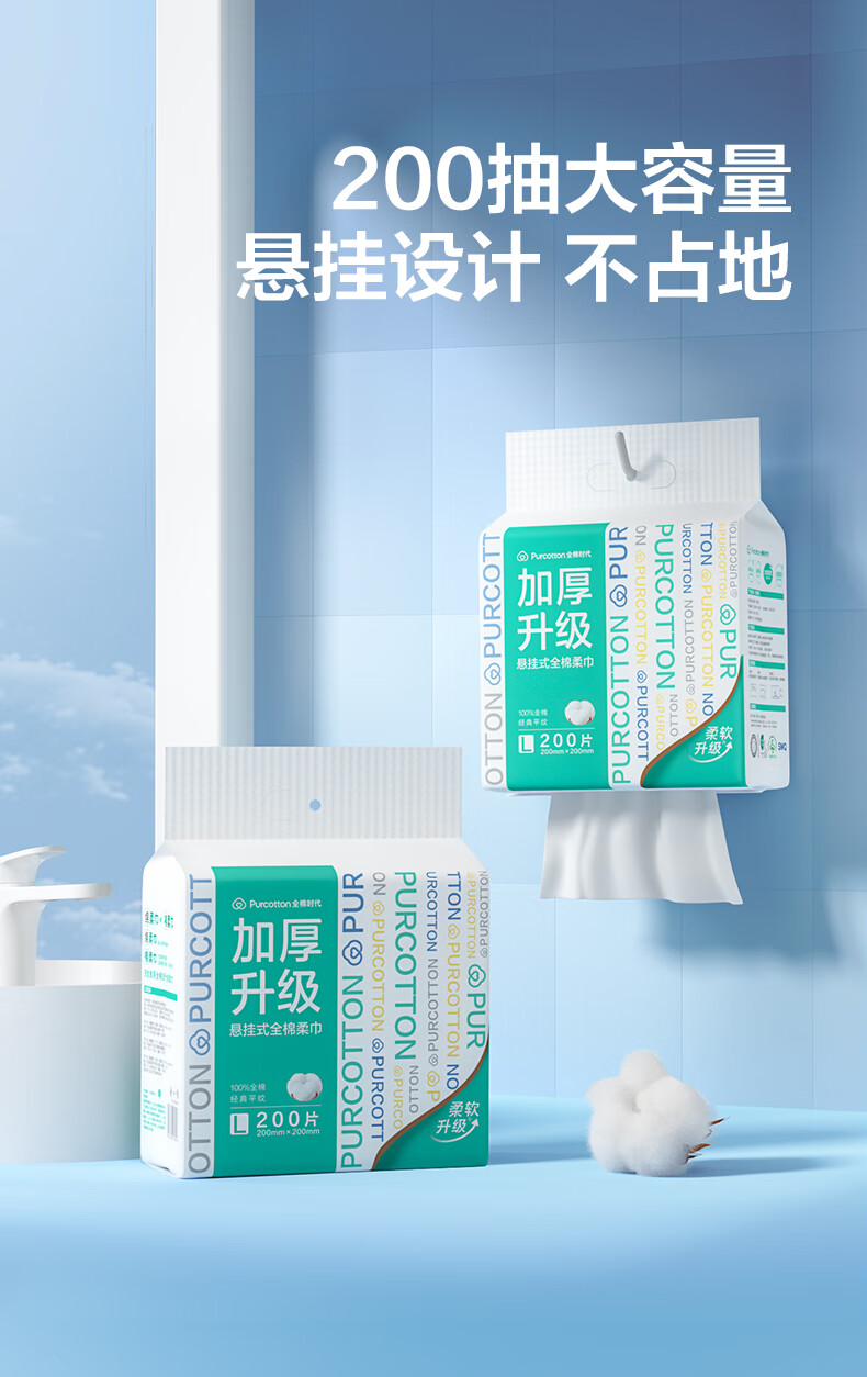 全棉时代棉柔巾-加厚升级悬挂式洗脸巾60gsm200抽/包