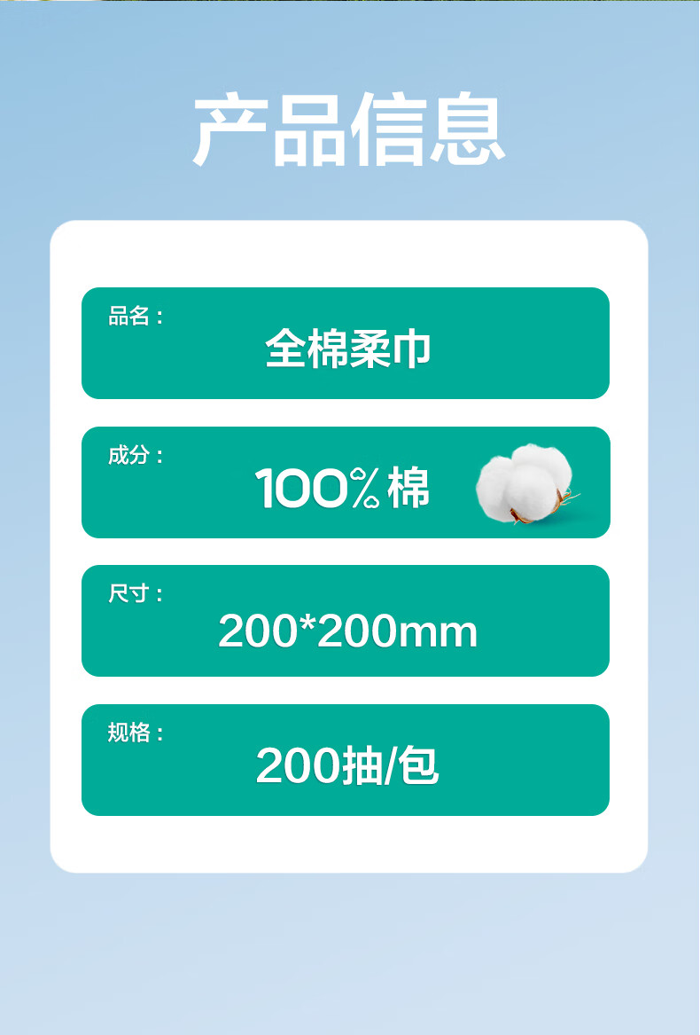 加厚升级悬挂式洗脸巾60gsm 尺寸:200mm*200mm 数量:200抽/包 产品说明:99.9%超纯水|可擦手口|一擦即净不留痕