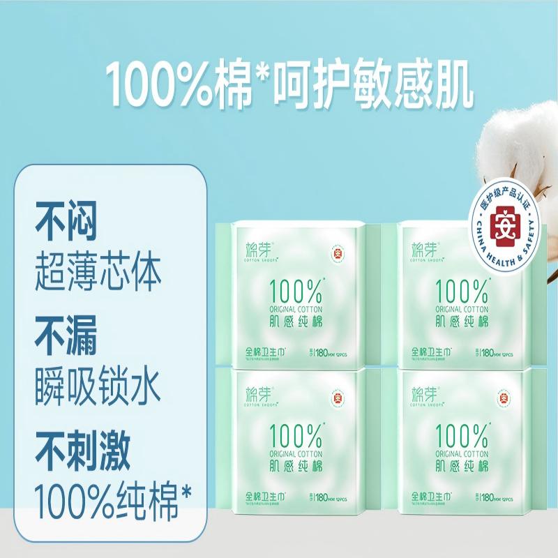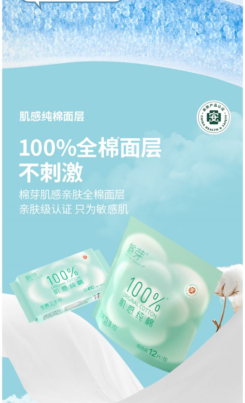 棉芽MY065全棉卫生巾姨妈巾纯棉日夜干爽透气180mm