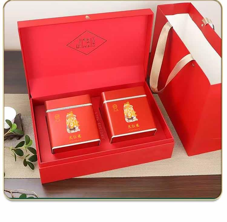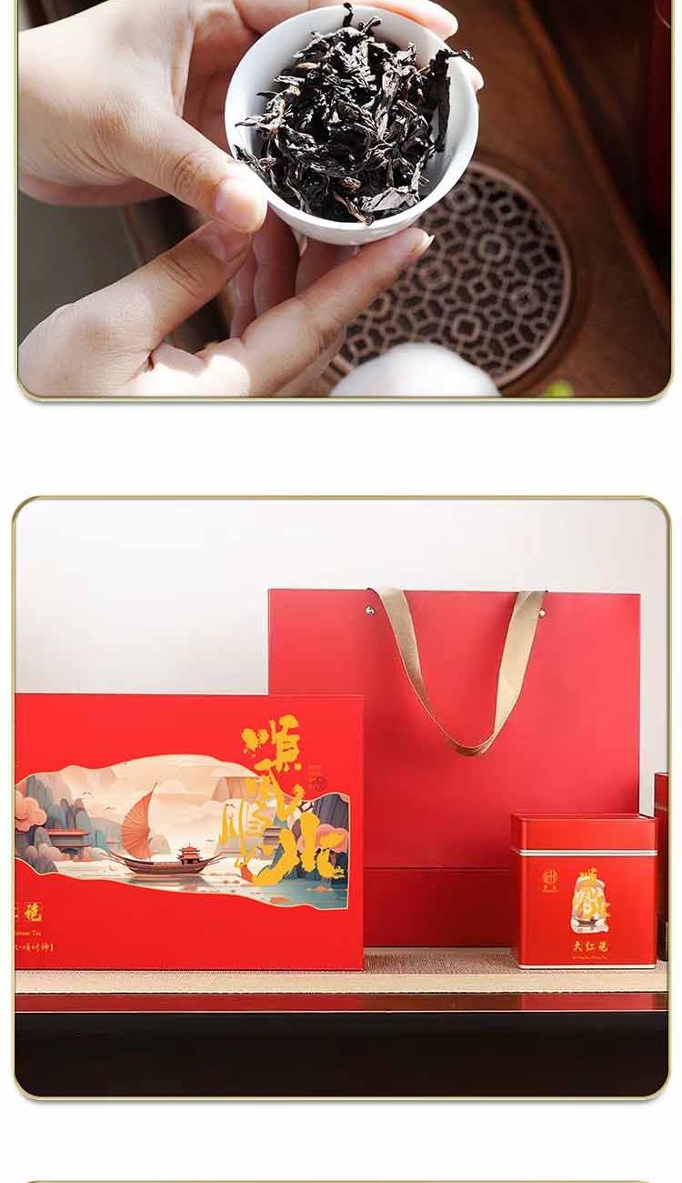 【茶名】:大红袍 【型号】:MY240822 【重量】:250g 【配件】:铁罐+礼盒+手提袋 【口味】:浓香型 【产地】:福建·武夷山 外形:紧结、壮实、稍扭曲。 色泽:带宝色或油润;整碎:匀整。 香气:锐、浓长或幽、清远; 滋味:岩韵明显,固味甘爽,杯底有香气。 汤色:清澈、艳丽、呈深橙黄色。