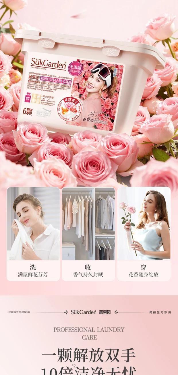 SukGarden蔬果园格拉斯玫瑰精油香氛洗衣液(拉环版)*1kg*1 蔬果园橘彩星光果蔬餐具净 泵装*800g+500g(1.3kg)*1 SukGarden蔬果园银针雪松洁厕剂*800g*1 SukGarden蔬果园格拉斯玫瑰4合1洗衣凝珠*10g*6颗*1 蔬果园无纺布礼品袋01号-谷爱凌版*33*33*13.5cm*1