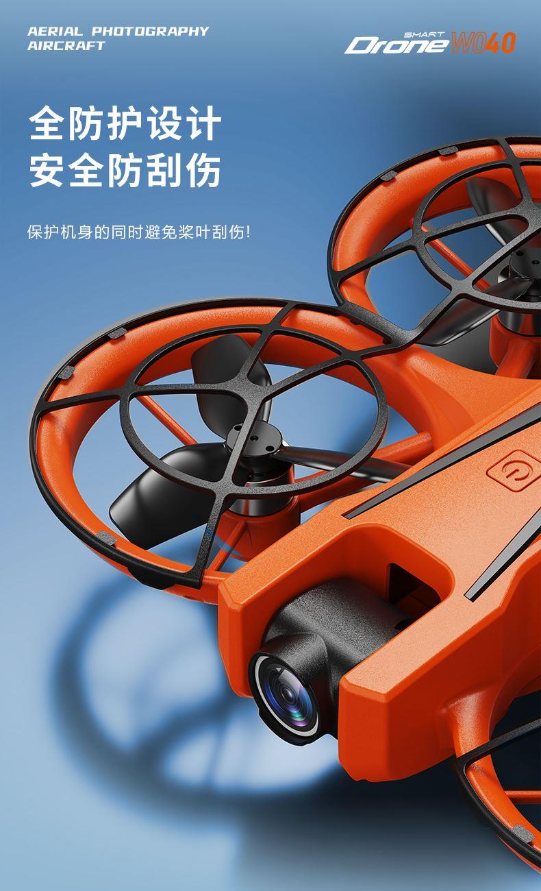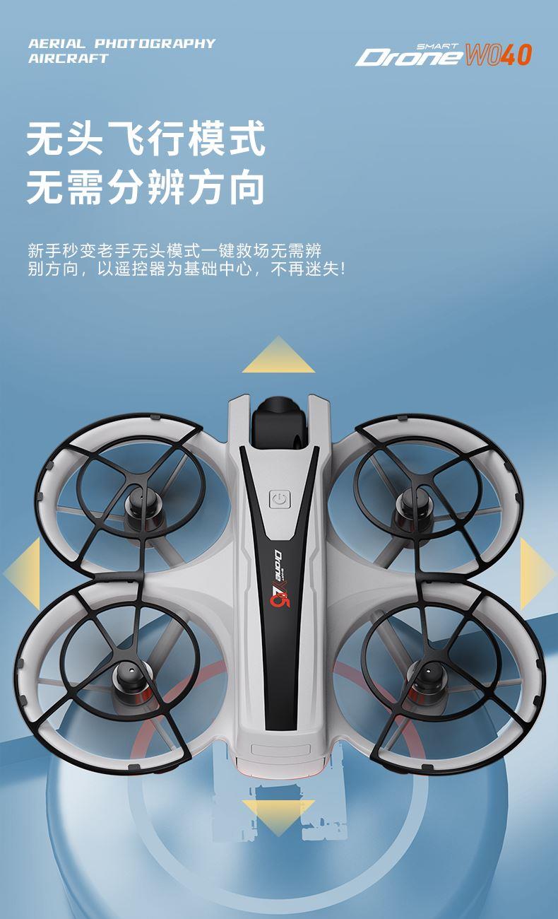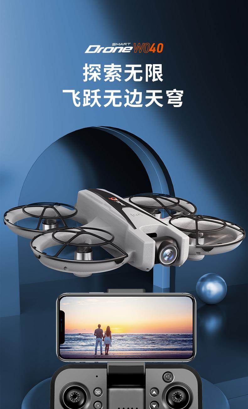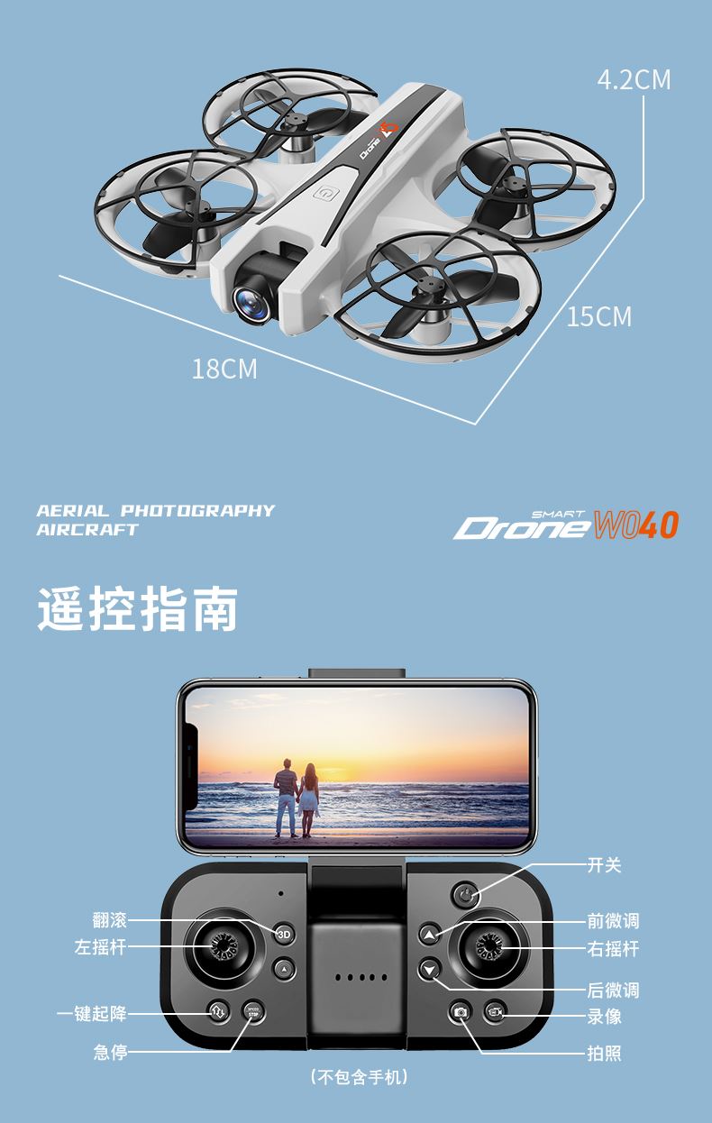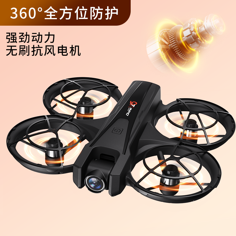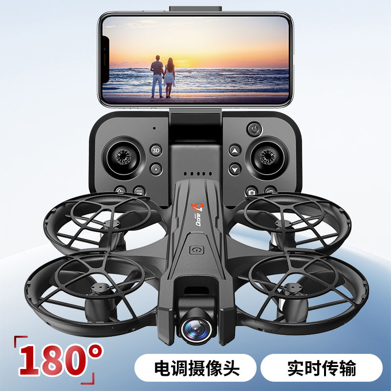 产品功能:可手动调节相机、双摄像头切换、光流悬停、一键起/降、360°翻滚、拍照、录像、四向微调、高亮LED灯、全防护设计、三档速度切换、无头模式