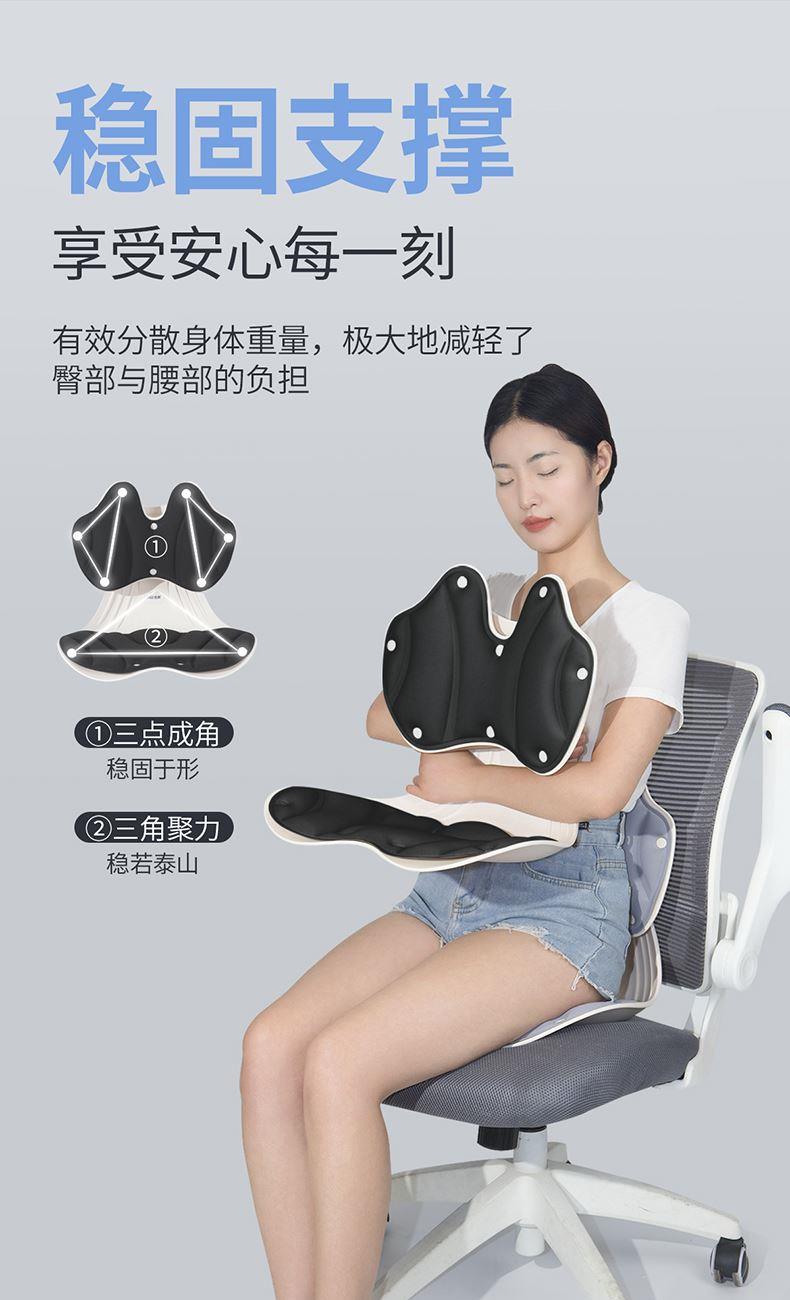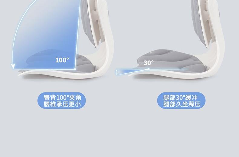 ①科学分区,贴合身体曲线 ②多挡调节,满足多样化需求 ③动态追背,随肌而动