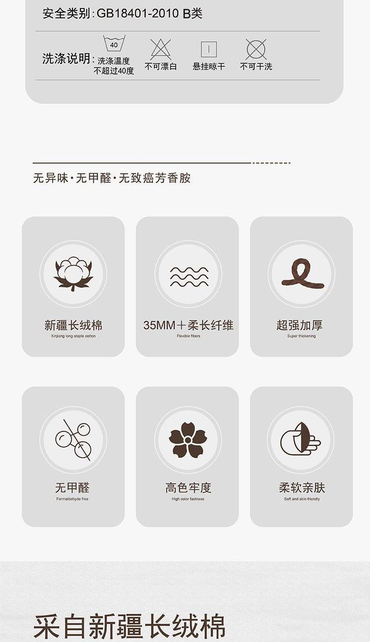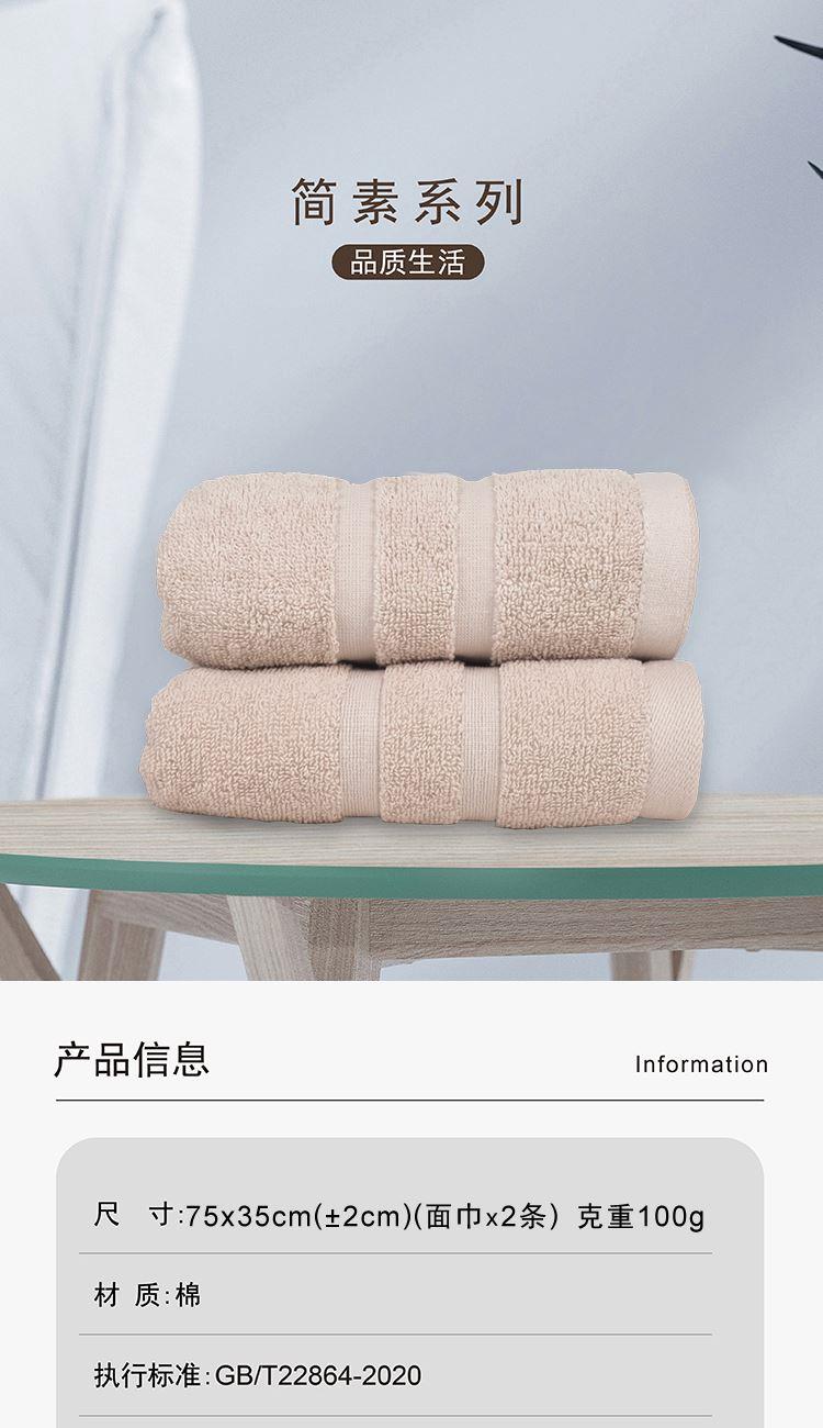 【面巾】×2 面巾克重:100g 面巾规格:75*35 cm (±2cm) 【材 质】棉 1.选用新疆长绒棉,质地柔软,手感舒适,不易掉毛 2.螺旋毛圈设计,整齐饱满,自然蓬松 3.缎档精纺工艺,采用先进的纺织工艺,优雅大气 4.加宽加厚锁边设计,更加整洁美观,结石耐用