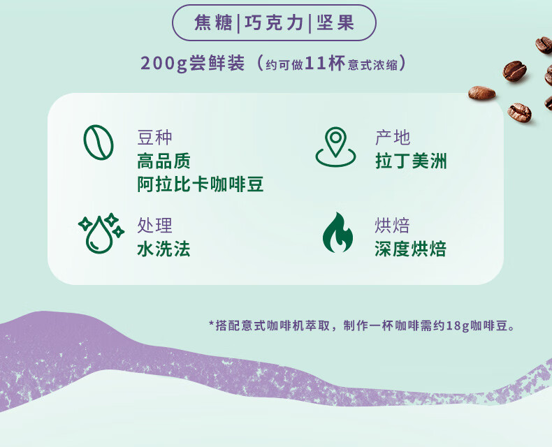 品种:高品质阿拉比卡咖啡豆 包装形式:200克/袋 烘培程度:深度烘焙