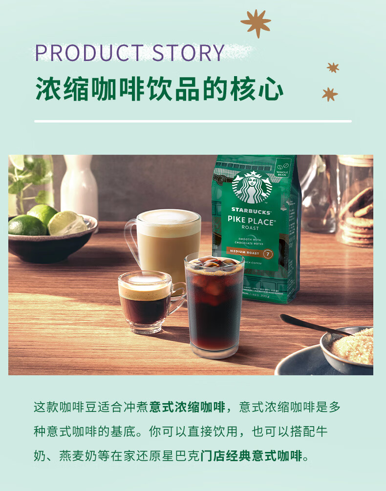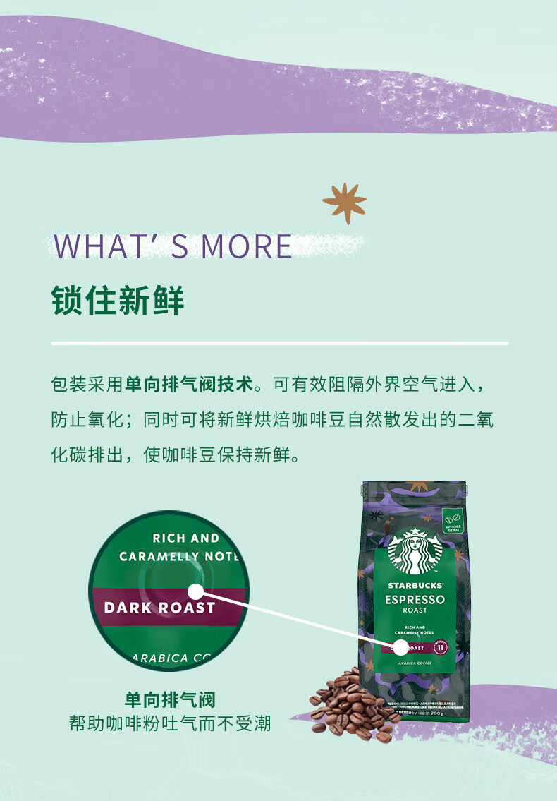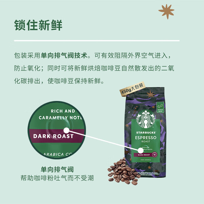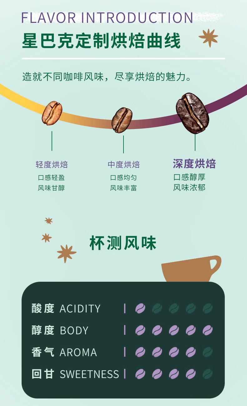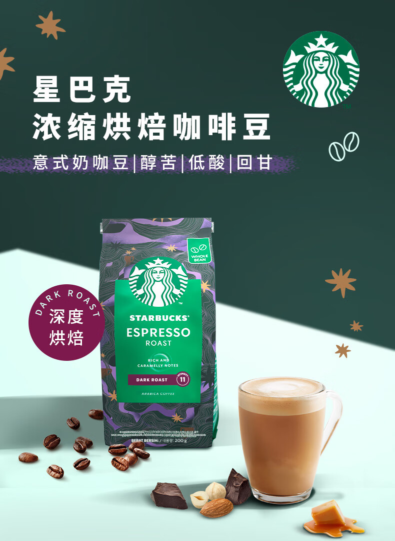 星巴克精品烘焙咖啡豆意式浓缩200g深度烘焙黑咖啡